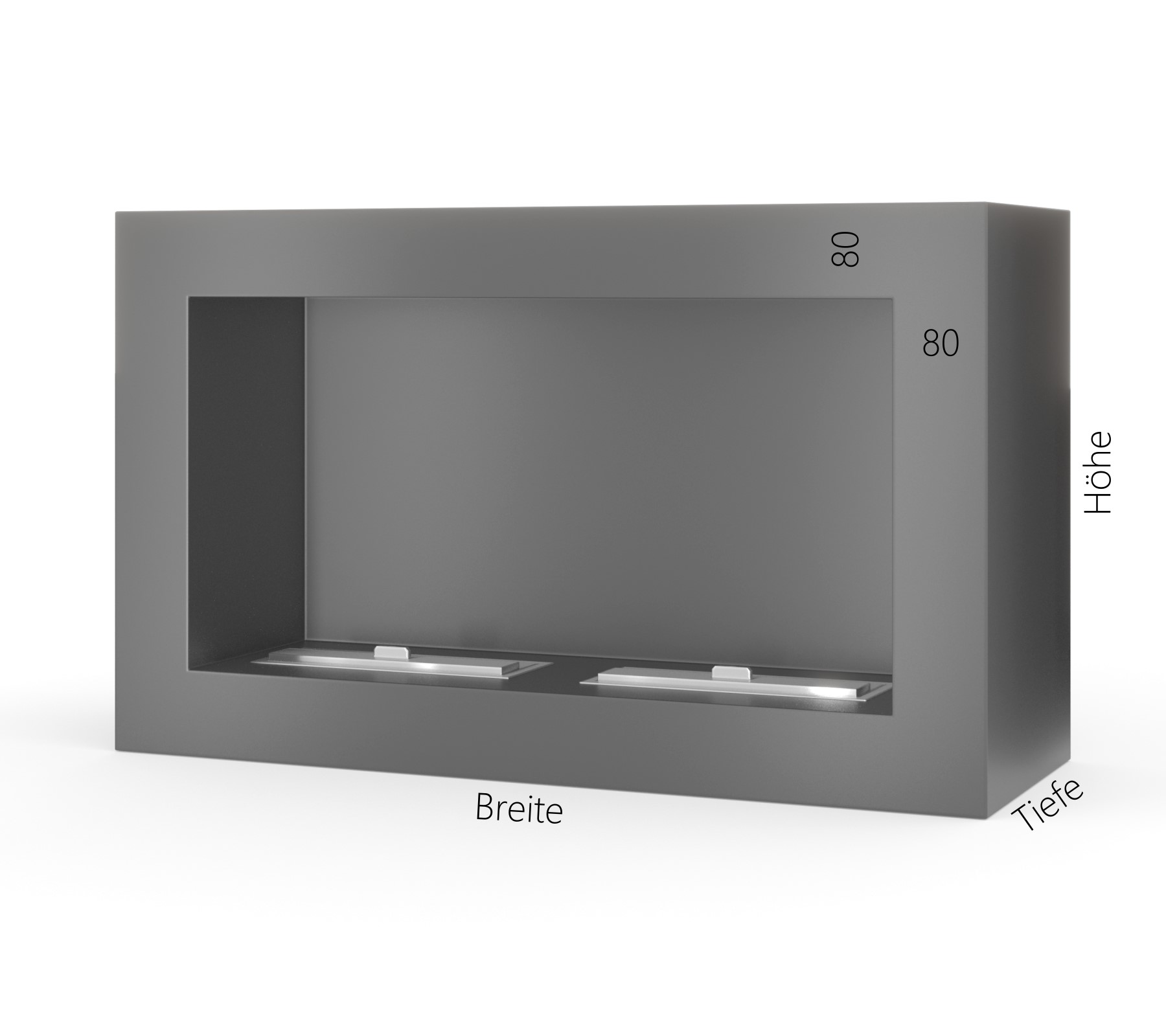 Je nach Ihrer bestellten Größe werden eine, zwei oder drei Brenneinheiten verbaut. Ab 81 cm werden zwei Brennboxen verbaut, ab einer Länge von 131 cm werden drei Brennboxen verbaut. Bitte beachten Sie: die zusammengestellten Maße sind Einbaumaße (siehe Zeichnung).