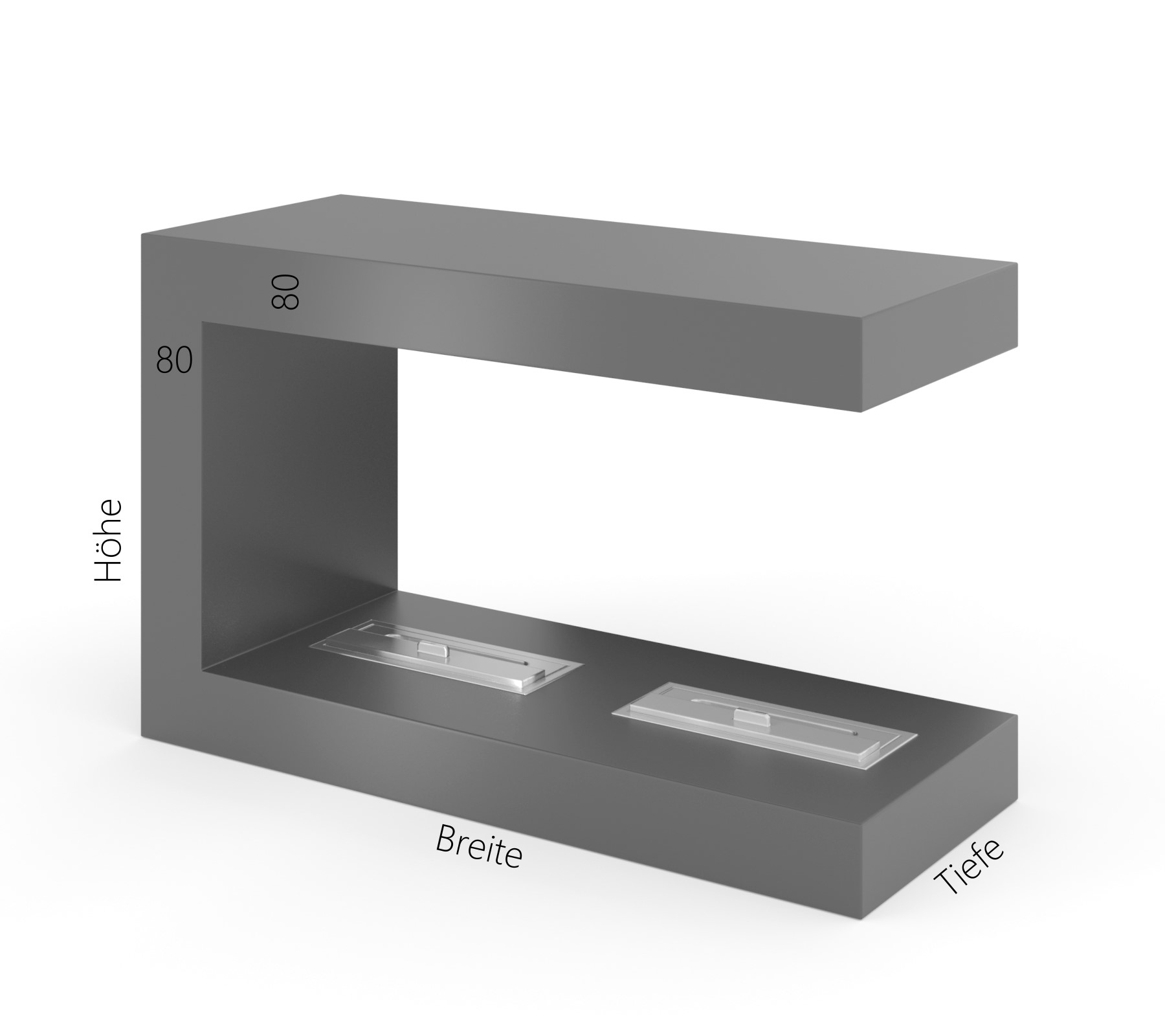 Je nach Ihrer bestellten Größe werden eine, zwei oder drei Brenneinheiten verbaut. Ab 81 cm werden zwei Brennboxen verbaut, ab einer Länge von 131 cm werden drei Brennboxen verbaut.
