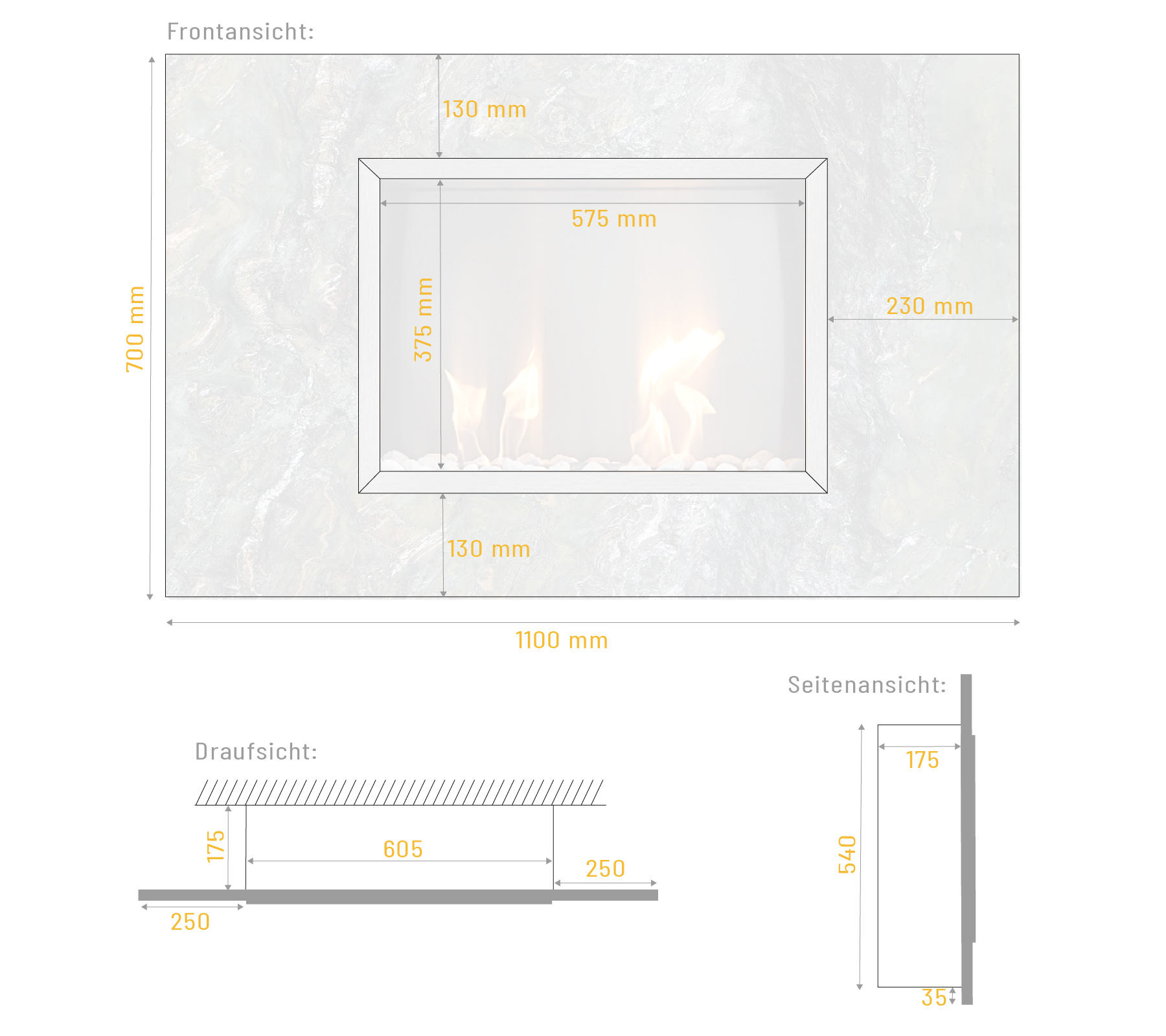 Wandkamin Bioalkohol V2A 110 x 70 cm