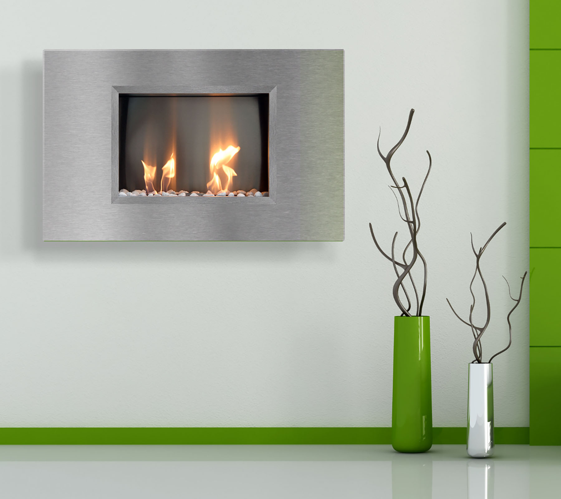 Wandkamin V2A in schicker Veredlung 110 x 70 x 20 cm