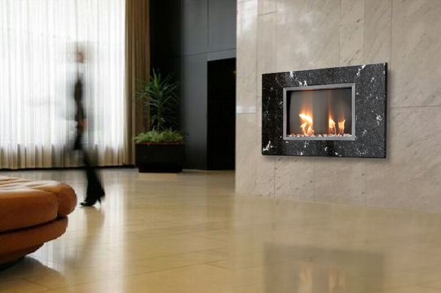 Bioethanol-Wandkamin mit Natursteinplatte zur freien Konfiguration