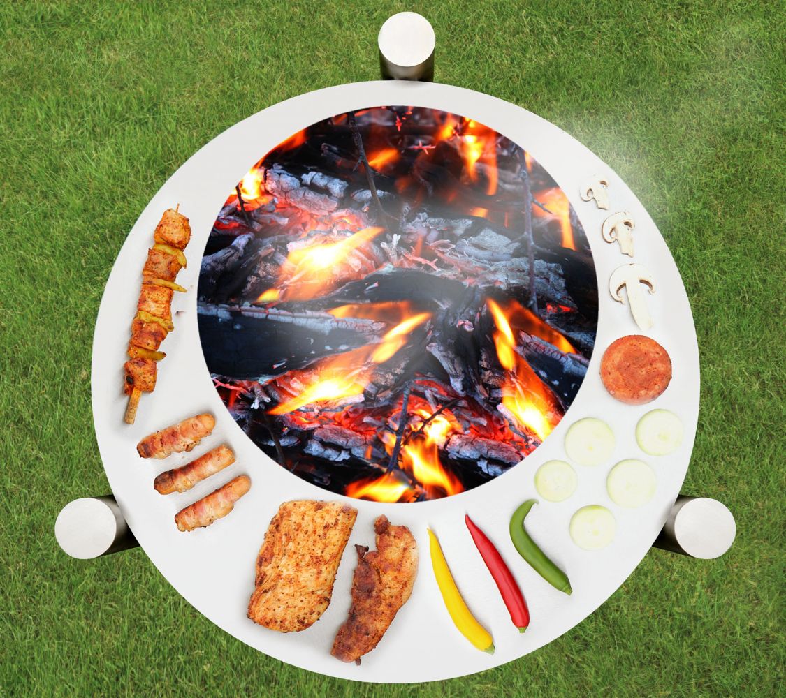 | Größe Feuerschale | Größe Grillplatte | Dicke Grillplatte | Größe Ausschnitt |