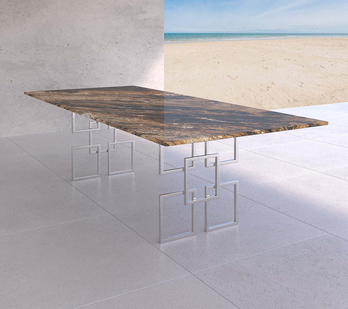Sämtliche Materialien, die wir in unserer Manufaktur verwenden, sind von höchster Qualität. Die wunderschöne Maserung der ausgesuchten Natursteine bringt die Schönheit des Naturmaterials hervorragend zur Geltung. Spiegelt sich das Sonnenlicht auf der Tischplatte des Modells Parma, können Sie feinste Farbnuancen und Schattierungen erkennen. Abhängig von den aktuellen Lichtverhältnissen nimmt der Naturstein unterschiedliche Farbtöne an und sorgt dafür, dass Ihr Tisch herrlich lebendig wirkt. Es macht Freude, den hübschen Tisch mit Geschirr und Accessoires einzudecken und eine einladende Tafel für Familienmitglieder und Gäste zu kreieren. Perfekt angepasst an die Höhe Ihrer Stühle, schafft der Designertisch für den Garten beste Voraussetzungen für genussvolle Mahlzeiten und angenehme Gesprächsrunden.