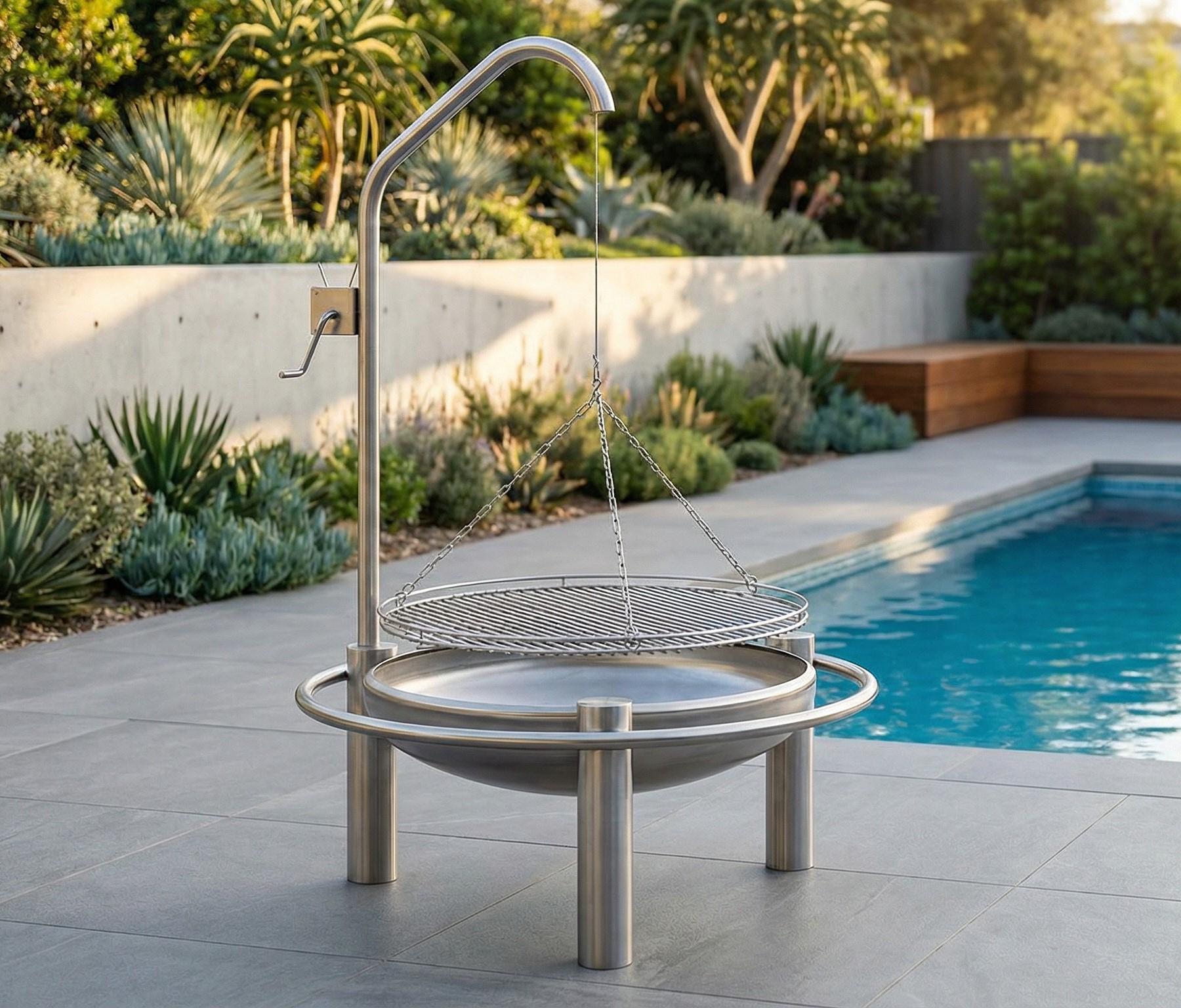 - Grillgalgen mit Kurbel, Seil und Kettensatz aus Edelstahl
