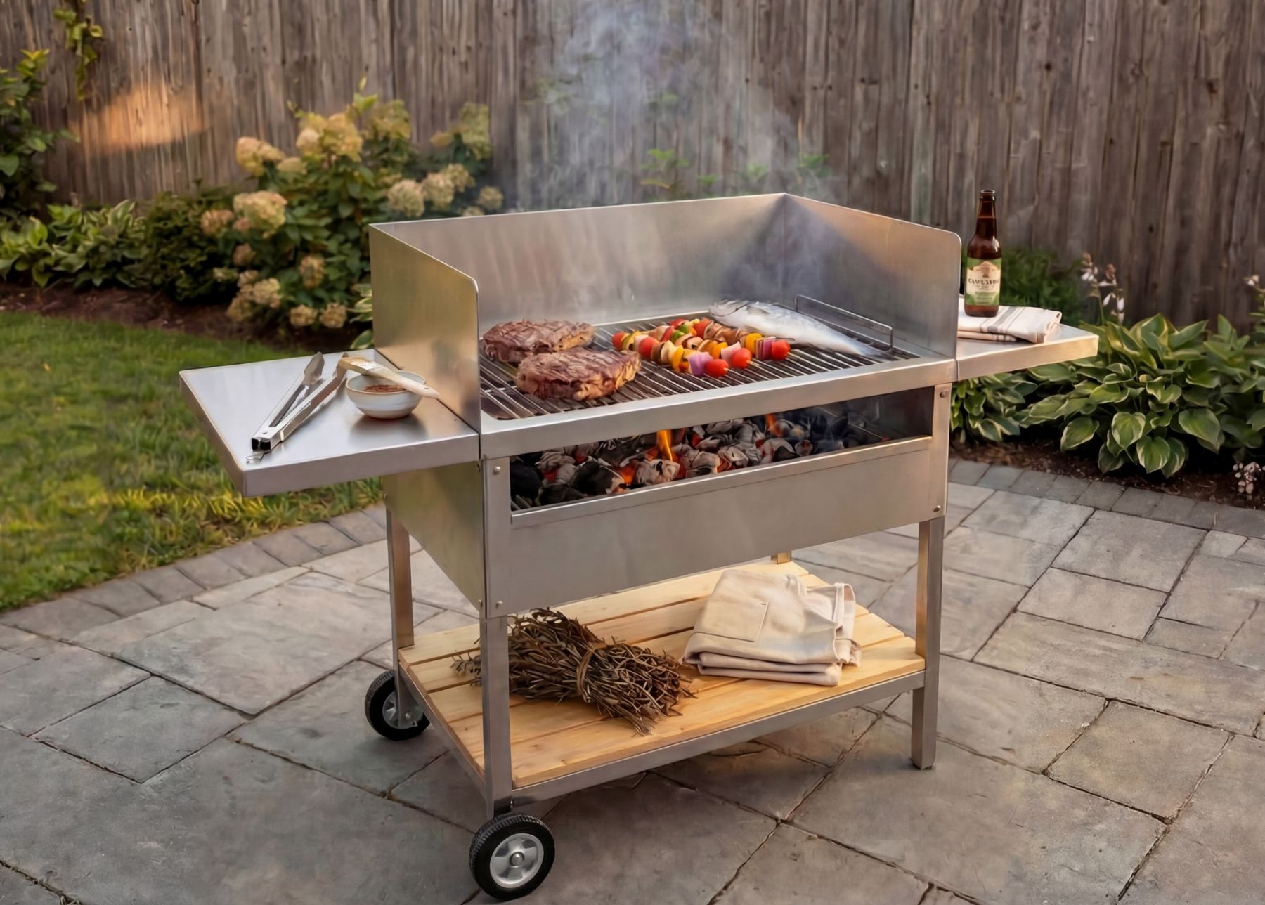 - Holzkohlegrill aus rostfreiem Edelstahl