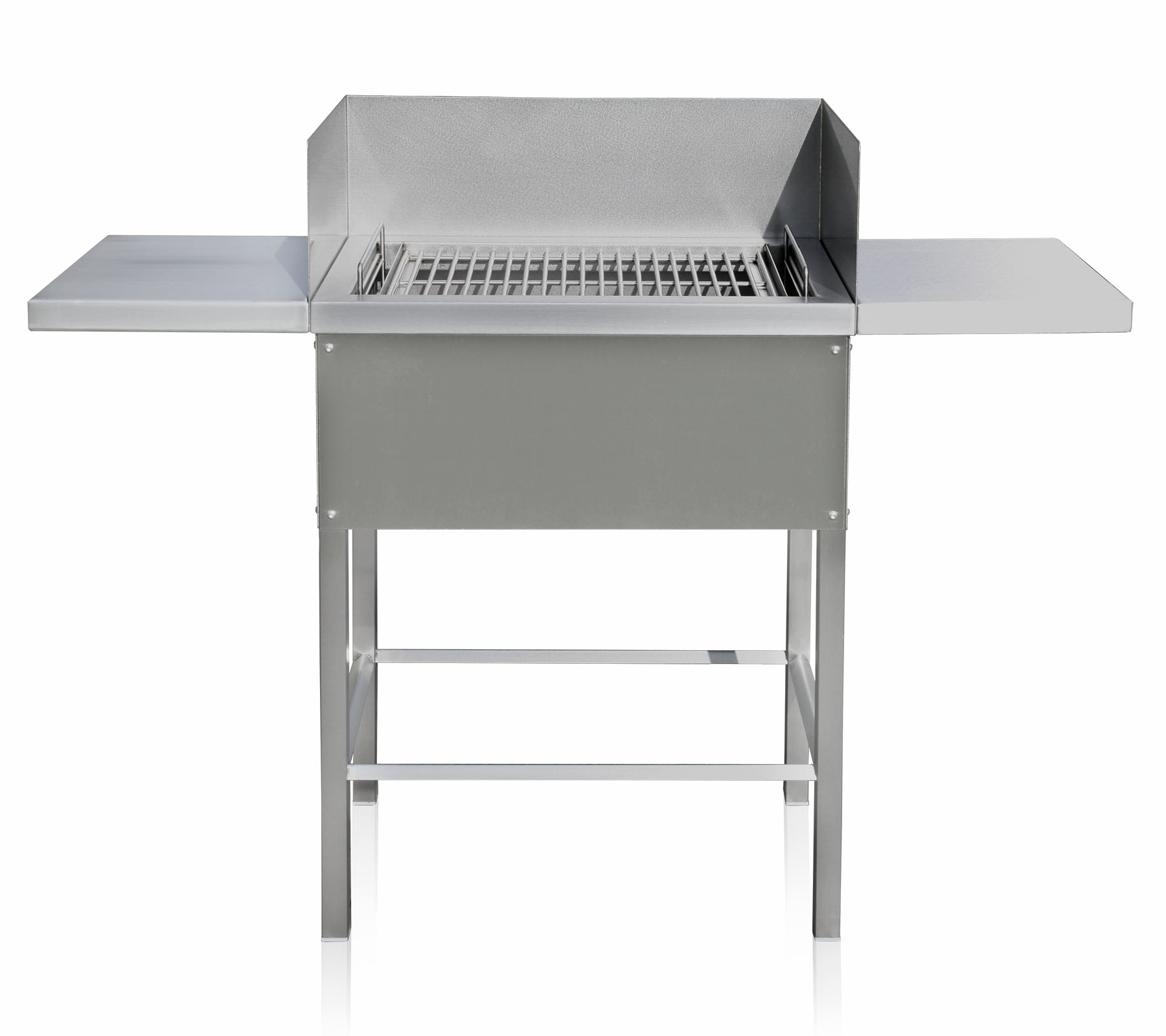 Der Holzkohlegrill wird vollständig aus rostfreiem Edelstahl gefertigt und ist für den dauerhaften Einsatz ausgelegt. Das Grundgestell ist an allen Seiten mit Edelstahlverblendungen versehen und steht stabil auf Kunststoffkappen. Die beiden Beistelltische sowie der Windschutz sind fest integriert und sorgen für eine klare, funktionale Optik. Die Kohlewanne ist herausnehmbar und 4-fach höhenverstellbar. In ihr sitzt die ebenfalls herausnehmbare Aschewanne. Der Grillrost wird oben aufgelegt und bleibt in seiner Position. Die Temperatursteuerung erfolgt über die Höhenverstellung der Kohlewanne.