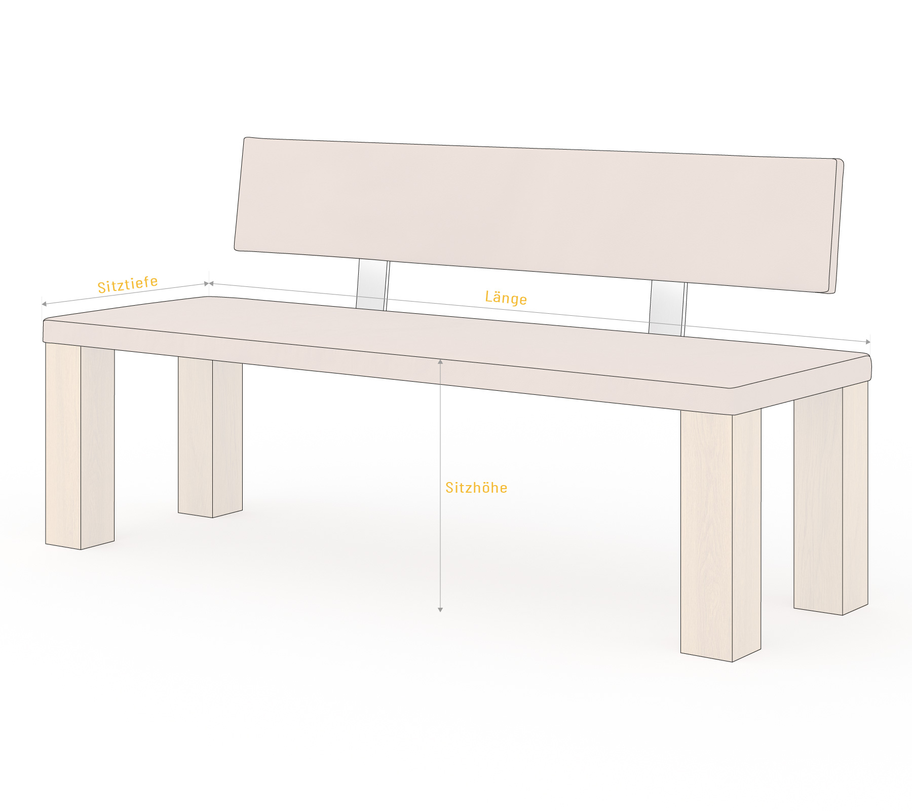 Passen Sie Ihren Bank in Breite, Tiefe und Höhe ganz Ihren Bedürfnissen an. Das Sitzpolster können Sie in der Stärke des Polsters selbst bestimmen.