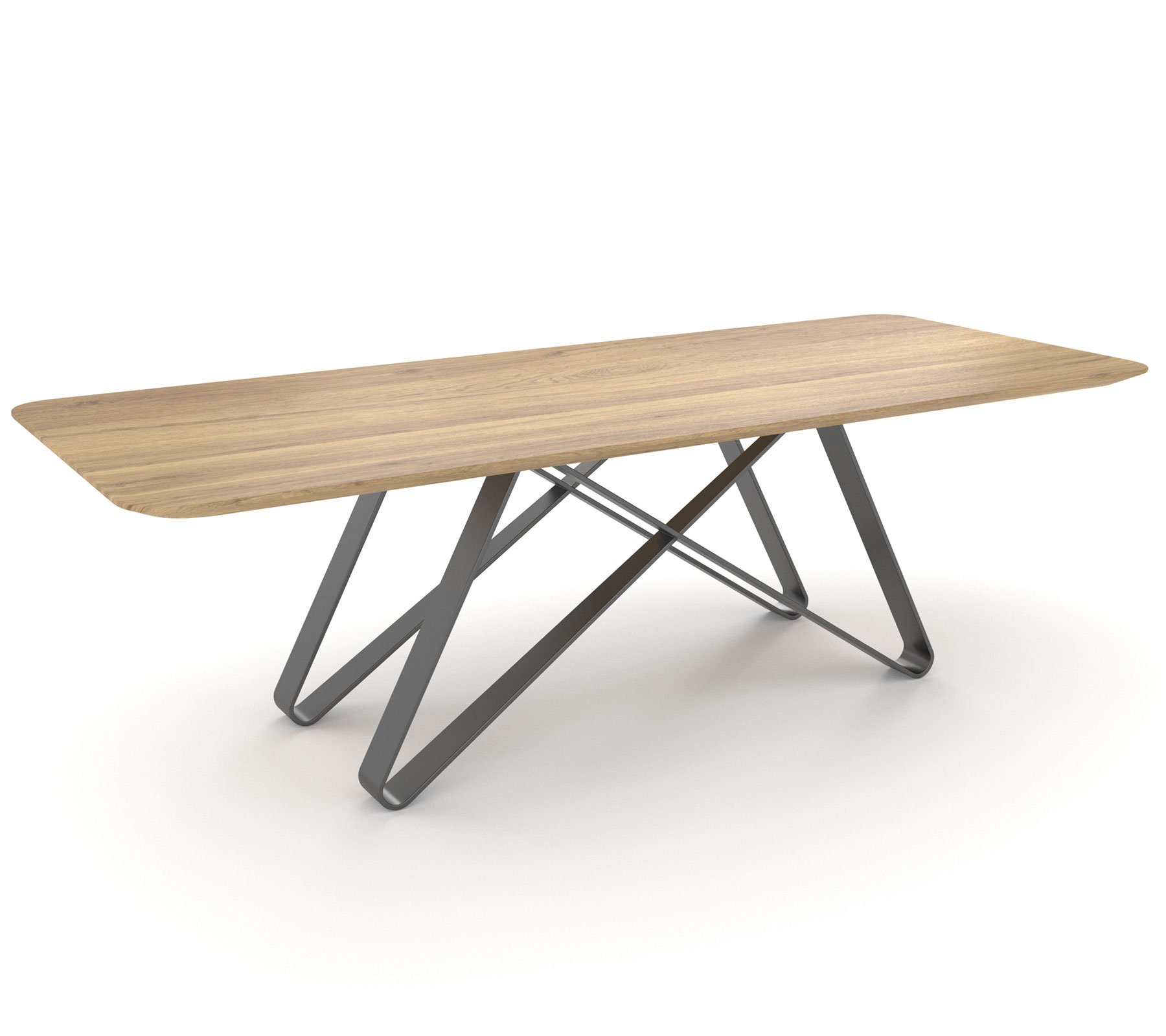 In pikantem Metalllook beweist sich das Tischgestell als sicheren und zuverlässigen Vertreter seiner Art. Ungewöhnlich außergewöhnlich wird die Tischplatte von vier Füßen gehalten, welche formschön und mit einem dezenten Mix aus Rundungen und Abkantungen miteinander verbunden sind. Für den extra Eyecatcher sorgt das X der Tischbeine: dadurch wird sowohl für absolute Stabilität als auch für den „Extrakick“ gesorgt. Produktbilder können von Ihrer Konfiguration abweichen, da nicht alle Parameter abgebildet werden können. Zur besseren Vorstellung fordern Sie bitte eine Visualisierung an.