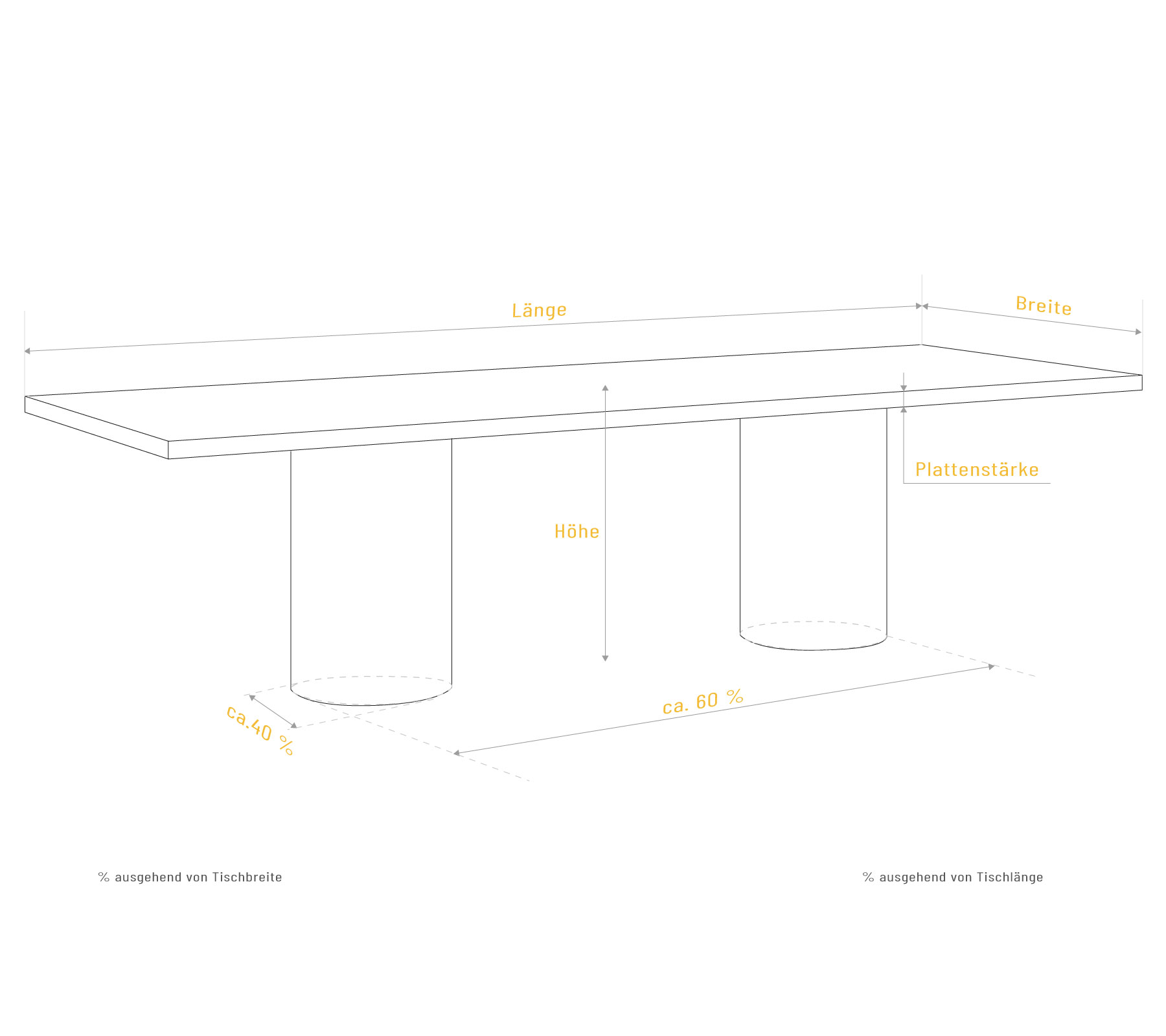 Bitte beachten Sie, dass unsere Esstische ausschließlich für den Innenbereich konzipiert sind. Sofern Sie einen Tisch für den Outdoor Bereich suchen, empfehlen wir unsere Kategorie Garten oder fragen Sie Ihr individuelles Projekt gern bei uns an.