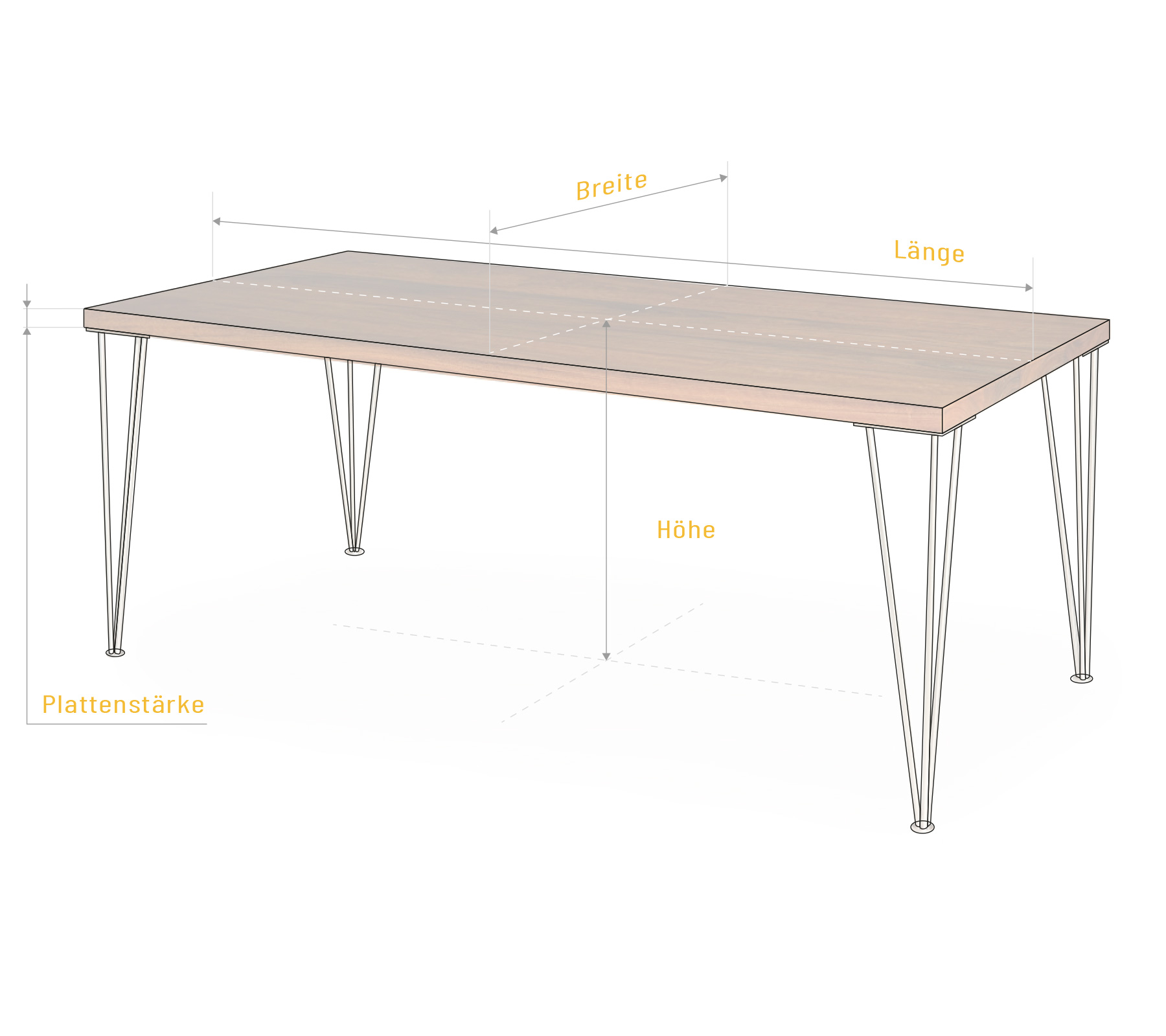 Die Oberfläche der Massivholzplatte wird nach ihrem Wunsch geschliffen oder gebürstet. Die handwerklich hochwertige Verarbeitung wird den Tisch zu Ihrem neuen Lieblingsmöbelstück machen. Zum Schutz wird die Holzoberfläche mit feinstem Öl versiegelt, dieses können Sie auch bei uns im Shop erwerben um das Massivholz zuhause weiterhin zu pflegen. Alternativ bieten wir die Holzoberfläche auch in gewachst oder lackiert an.