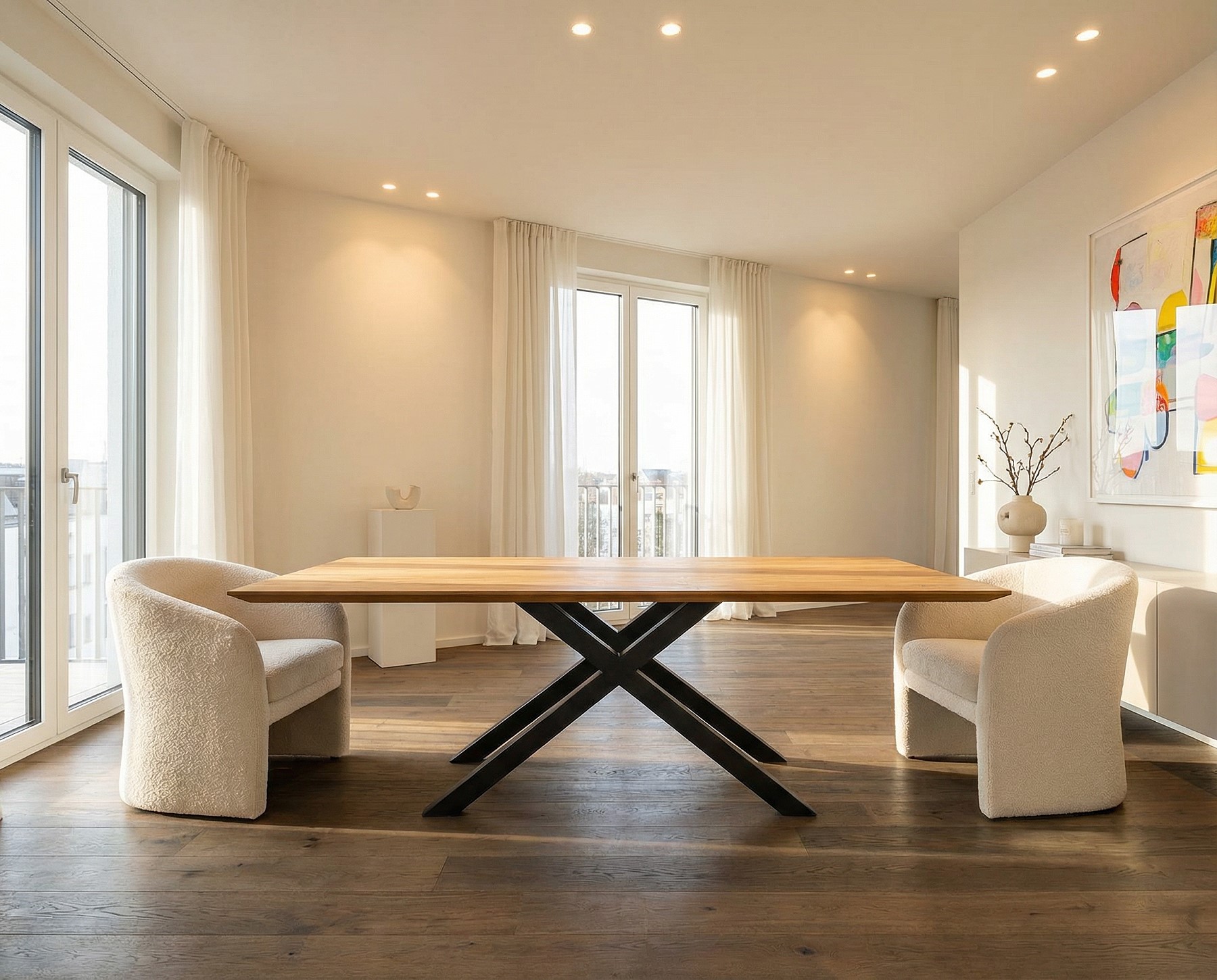 Esstisch modern aus Massivholz mit X-Gestell nach Maß Homel