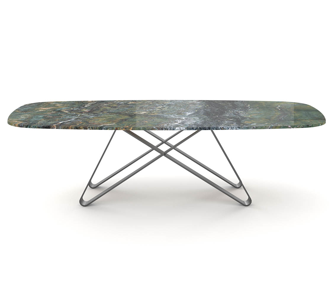 In pikantem Metalllook beweist sich das Tischgestell als sicherer und zuverlässiger Vertreter seiner Art. Ungewöhnlich außergewöhnlich wird die Tischplatte von scheinbar vier Füßen gehalten, welche formschön und mit einem dezenten Mix aus Rundungen und Abkantungen miteinander verbunden sind. Für den extra Eyecatcher sorgt das X der Tischbeine: dadurch wird sowohl für absolute Stabilität als auch für den „Extrakick“ gesorgt. Abgerundet wird dieses Designwunder mit einer einzigartigen Steinplatte. Klare Formen, Farben und Strukturen sorgen für ein unverwechselbares Finish. Produktbilder können von Ihrer Konfiguration abweichen, da nicht alle Parameter abgebildet werden können. Zur besseren Vorstellung fordern Sie bitte eine Visualisierung an.