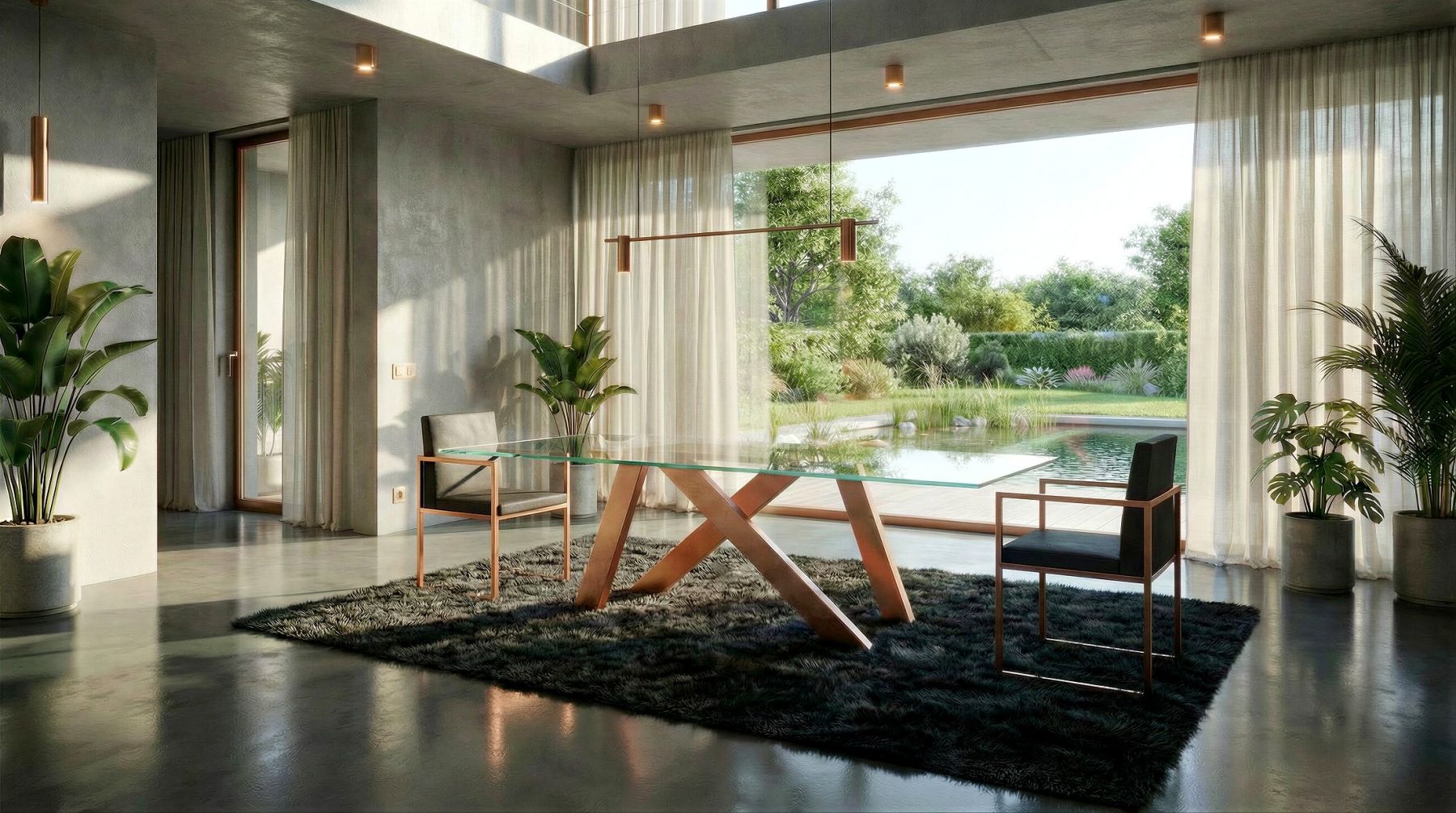 Beim Tischgestell können Sie zwischen Edelstahl gebürstet oder Stahl auswählen. Der Stahl kann dann eine farbliche Beschichtung erhalten oder raffiniert mit Blattgold, Blattsilber oder Blattkupfer veredelt werden. Finden Sie mithilfe unseres Konfigurators die richtigen Materialien für Ihr Möbel nach Maß. Die positive visuelle und haptische Mischung von unseren hochwertigen Materialien werden Ihre Wohnatmosphäre besonders aufwerten. Mit unserer Hilfe können Sie Ihr gesamtes Interieur nach Ihren Bedürfnissen anpassen.