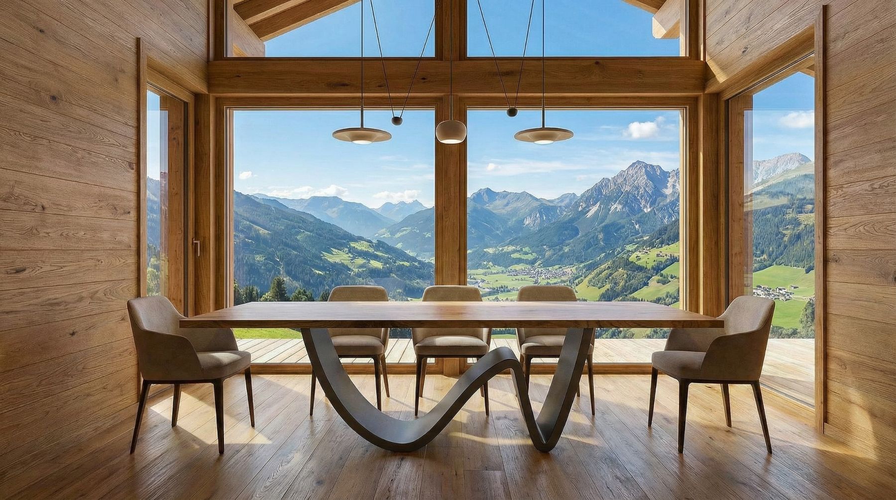 Für eine ausgewogene Optik und stimmige Proportionen empfehlen wir für diesen Esstisch eine Mindestlänge der Tischplatte von 150 cm. Gerade im täglichen Gebrauch sorgt dieses Maß für angenehme Beinfreiheit und ein harmonisches Gesamtbild. Das Gestell wird jeweils proportional an die Größe der Tischplatte angepasst und fügt sich so selbstverständlich in das Design ein. Bitte beachten Sie dabei, dass das Wellengestell konstruktionsbedingt ein Mindestmaß von 90 cm in der Länge benötigt. So stellen wir sicher, dass Funktion, Komfort und Ästhetik in jeder Tischgröße perfekt zusammenspielen.