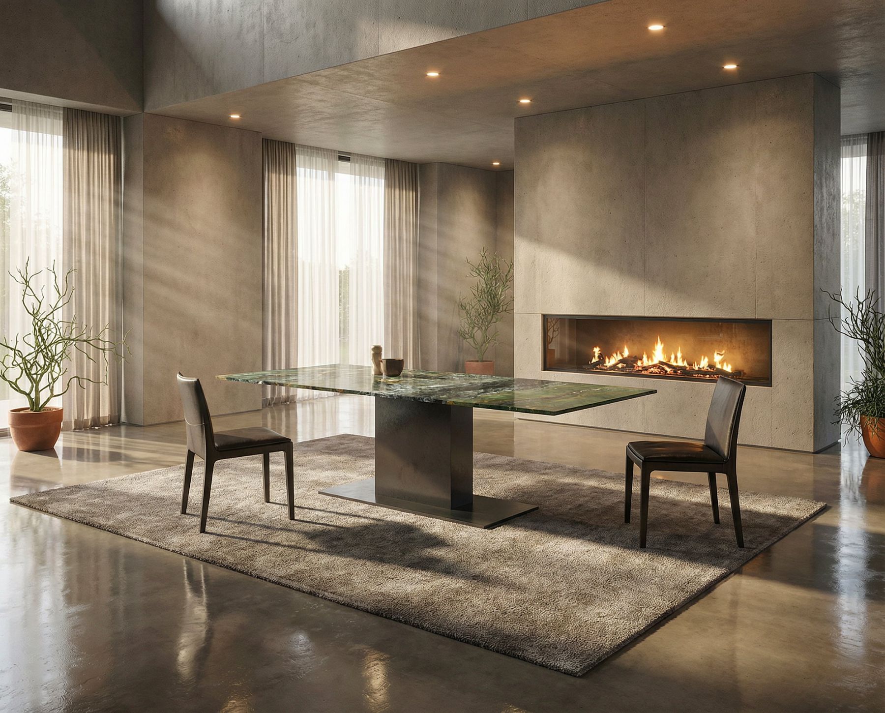 Die Tischplatte aus Naturstein lässt sich mit den optional erhältlichen Ansteckplatten vergrößern, sodass Sie für jede Situation gewappnet sind - Sitzplätze sind jetzt kein Problem mehr. Die Tischplatte besteht aus Naturstein und ist dadurch sehr stabil und strapazierfähig. Überdies ergänzt dieser individuelle Designertisch mit seinen einmaligen Feinheiten aus Edelstahl und Naturstein perfekt ein stilvolles Wohnkonzept. Das Tischgestell in Edelstahl oder Stahl bietet all Ihren Gästen reichlich Beinfreiheit und bietet ebenso genügend Standfestigkeit. Dürfen wir vorstellen: das neue Highlight Ihres Esszimmers! Variieren Sie die Länge, Breite und Höhe Ihres Tisches, wählen Sie zwischen hellem, braunen oder farbigem Granit und erschaffen Sie dadurch Ihr eigenes Einzelstück. Der von uns in Deutschland entwickelte Tisch verbindet hochwertige Qualität und ein ausgewogenen Designanspruch. So macht der nächste Tischdienst garantiert Spaß. Produktbilder können von Ihrer Konfiguration abweichen, da nicht alle Parameter abgebildet werden können. Zur besseren Vorstellung fordern Sie bitte eine Visualisierung an.
