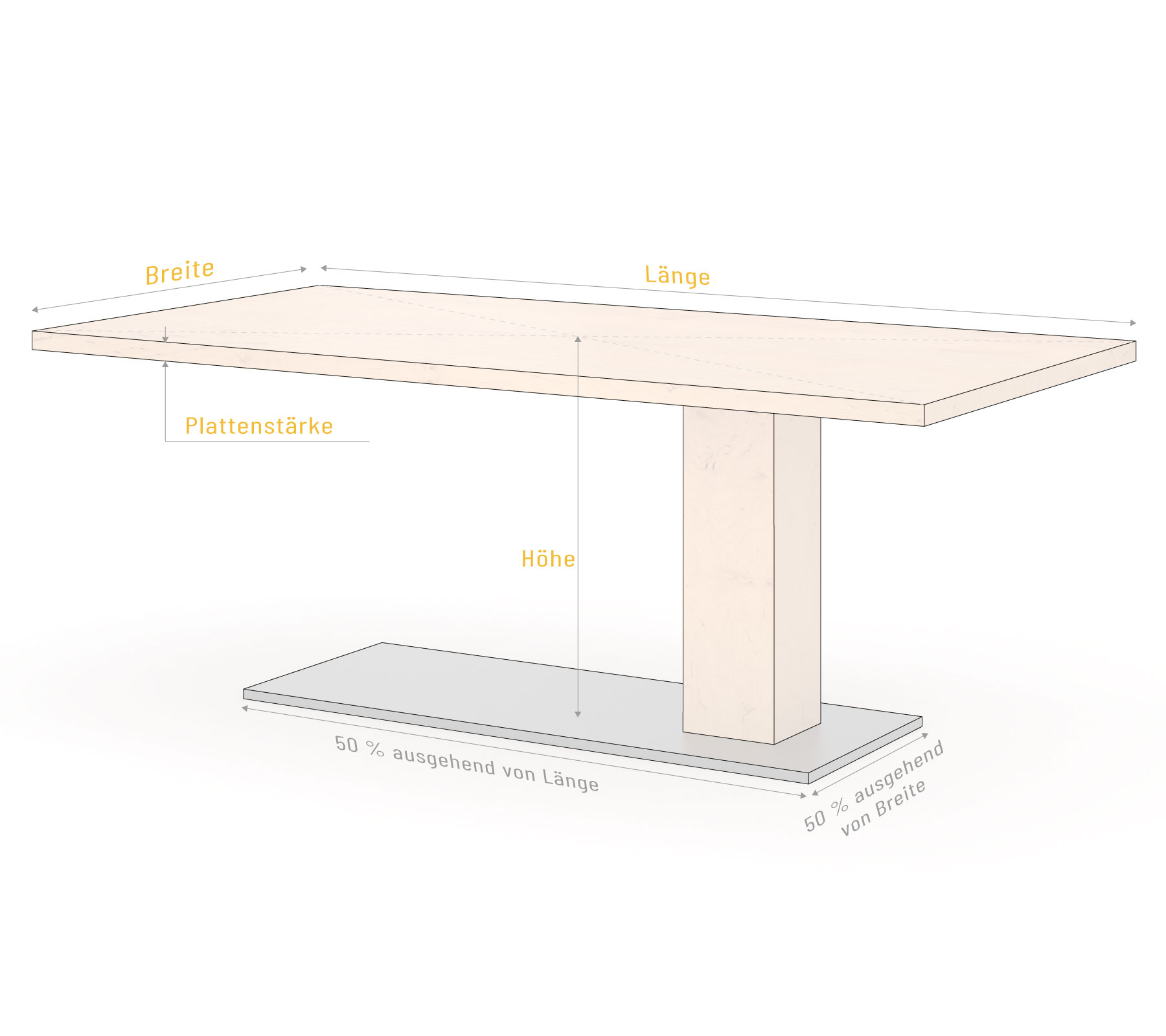 Exklusiver Esstisch Massivholz konfigurieren mit Standfuß Taipeh