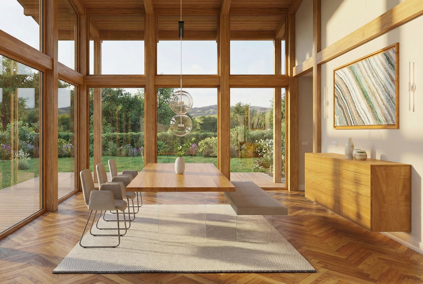 Die Tischplatte besteht aus Massivholz und ist dadurch sehr stabil und robust, überdies ergänzt dieser einladende Designertisch nach Maß mit seinen einmaligen Feinheiten perfekt ein natürliches Wohnkonzept. Durch unsere handwerkliche Kenntnis werden uns die unterschiedlichsten Holzverarbeitungen ermöglicht. Egal, ob eine Baumkante- oder eine Stadionform, wir fertigen nach Ihren Vorstellungen. Konfigurieren Sie im oberen Bereich Ihre Materialien Massivholz und Glas. Wählen Sie zwischen 40 Hölzern und 8 unterschiedlichen Varianten für die Glaswangen. Entscheiden Sie zwischen den verschiedensten Variationen zur Kanten- und Oberflächenbearbeitung, Holzversiegelung und Tischplattenform - von der Eiche bis zur Zirbe. Eine glasklare Sache - das gläserne Gestell vermittelt ein Gefühl von Leichtigkeit und Harmonie und trägt die Tischplatte auf sicheren „Händen“. Es entsteht die perfekte Ruhezone in schwebender Gestalt und atemberaubenden Design, zum Entspannen, Genießen und Bestaunen - und natürlich zum alltäglichen Gebrauch. Produktbilder können von Ihrer Konfiguration abweichen, da nicht alle Parameter abgebildet werden können. Zur besseren Vorstellung fordern Sie bitte eine Visualisierung an.