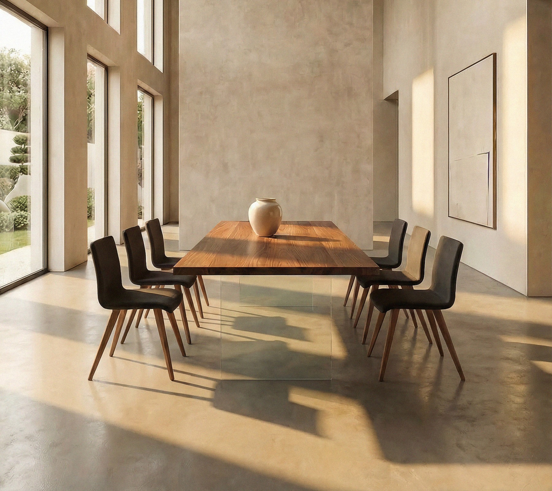Als würde die Tischplatte schweben. Der Esstisch Miami verkörpert schlichte Eleganz, die jedes Designer-Herz höherschlagen lassen. Diese außergewöhnliche Gestalt bietet dabei verführerische Anmut der Holz-Glas-Kombination. Fast schon schwebend fügt er sich in jeden Wohnstil und gibt jedem Essbereich sein persönliches Statement.