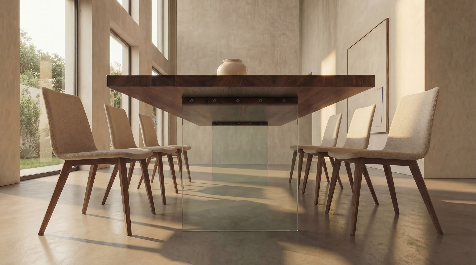 Esstisch Miami mit Holzplatte und Glasuntergestell