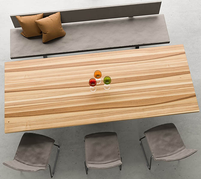 Nachdem Sie das gewünschte Massivholz favorisiert haben, können Sie zwischen der Holzsortierung „Standard“ und „Premium“ wählen. Bei einer Standard-Sortierung können die Holzbohlen mit Splint, Ästen und Fehlstellen verarbeitet sein. Mit handwerklichem Geschick werden Äste bzw. Fehlstellen ausgeharzt, somit entsteht ein natürliches Gesamtbild. Bei der Auswahl Premium sortiert unser Tischler Holzbohlen für die Oberfläche mit Splint und großen Ästen fast vollständig aus. Das Erscheinungsbild der Massivholz-Oberfläche wirkt gleichmäßiger und ruhiger. Sollten dennoch Äste, Risse oder Fehlstellen vorhanden sein, werden diese ebenfalls mit Harz aufgefüllt. Bitte beachten Sie, dass unsere Möbel ausschließlich für den Innenbereich konzipiert sind. Sofern Sie Möbel für den Outdoor Bereich suchen, empfehlen wir unsere Kategorie Gartentische oder fragen Sie Ihr individuelles Projekt gern bei uns an.