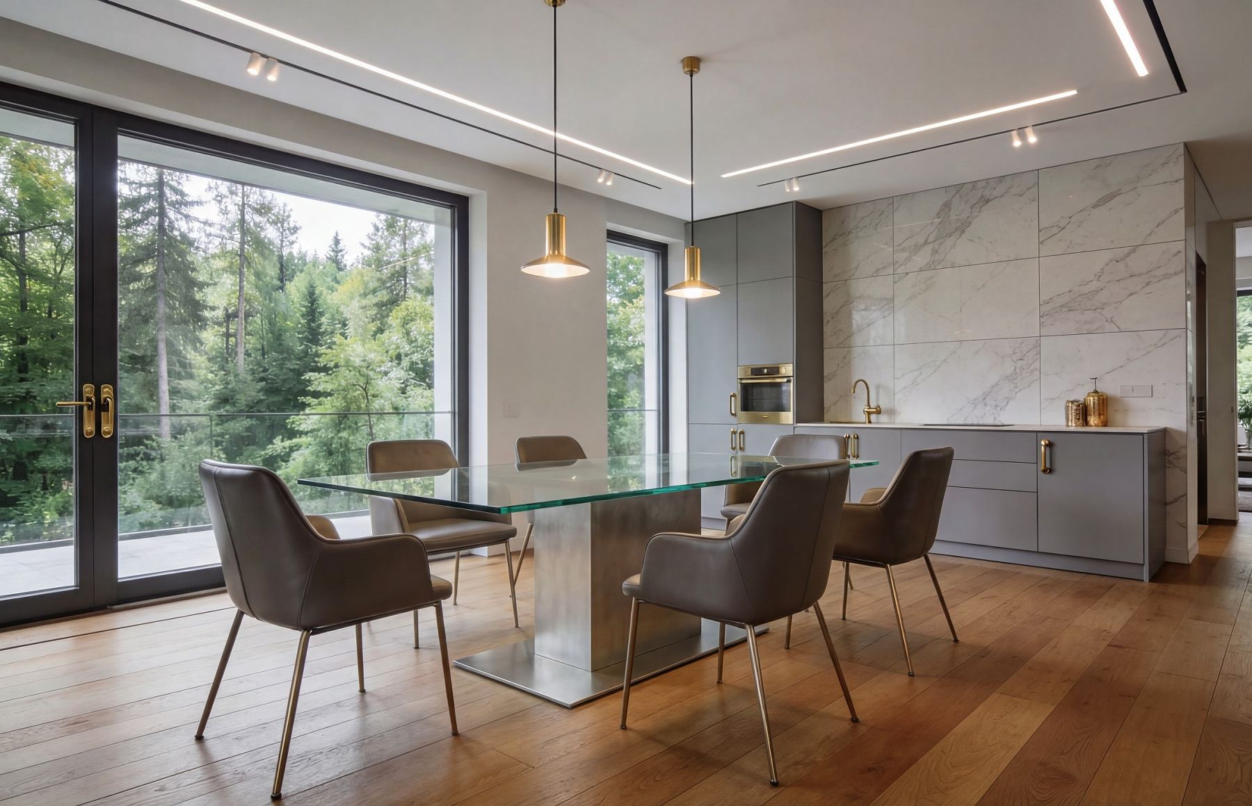Glastisch modern mit Mittelsäule Metall nach Maß Kilkenny