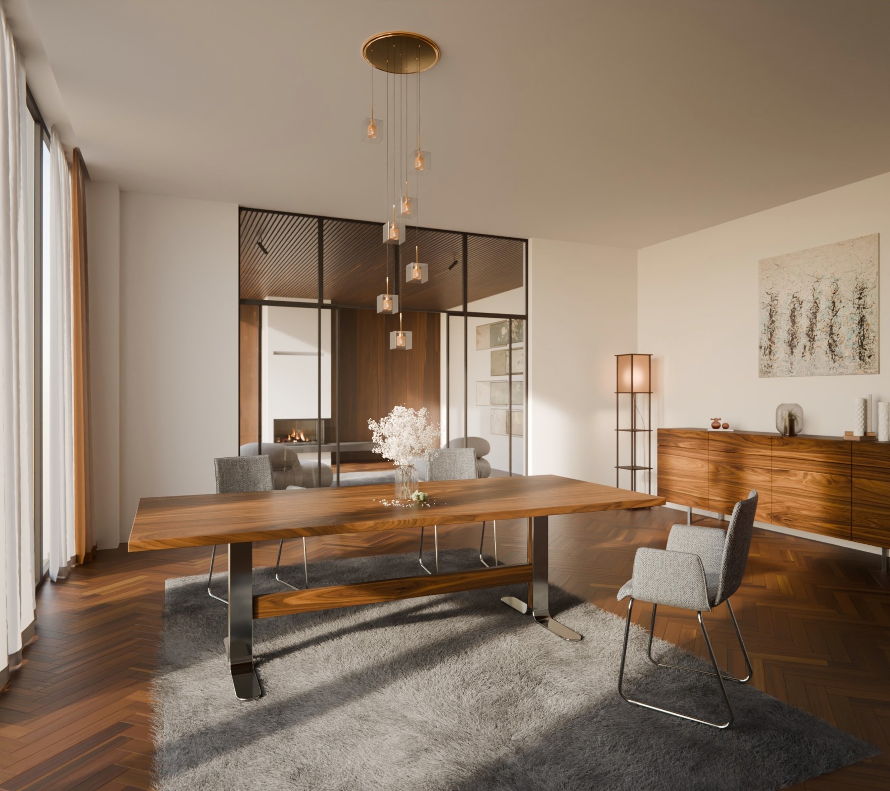 Luxus Esstisch Massivholz und Edelstahl nach Maß Bradford