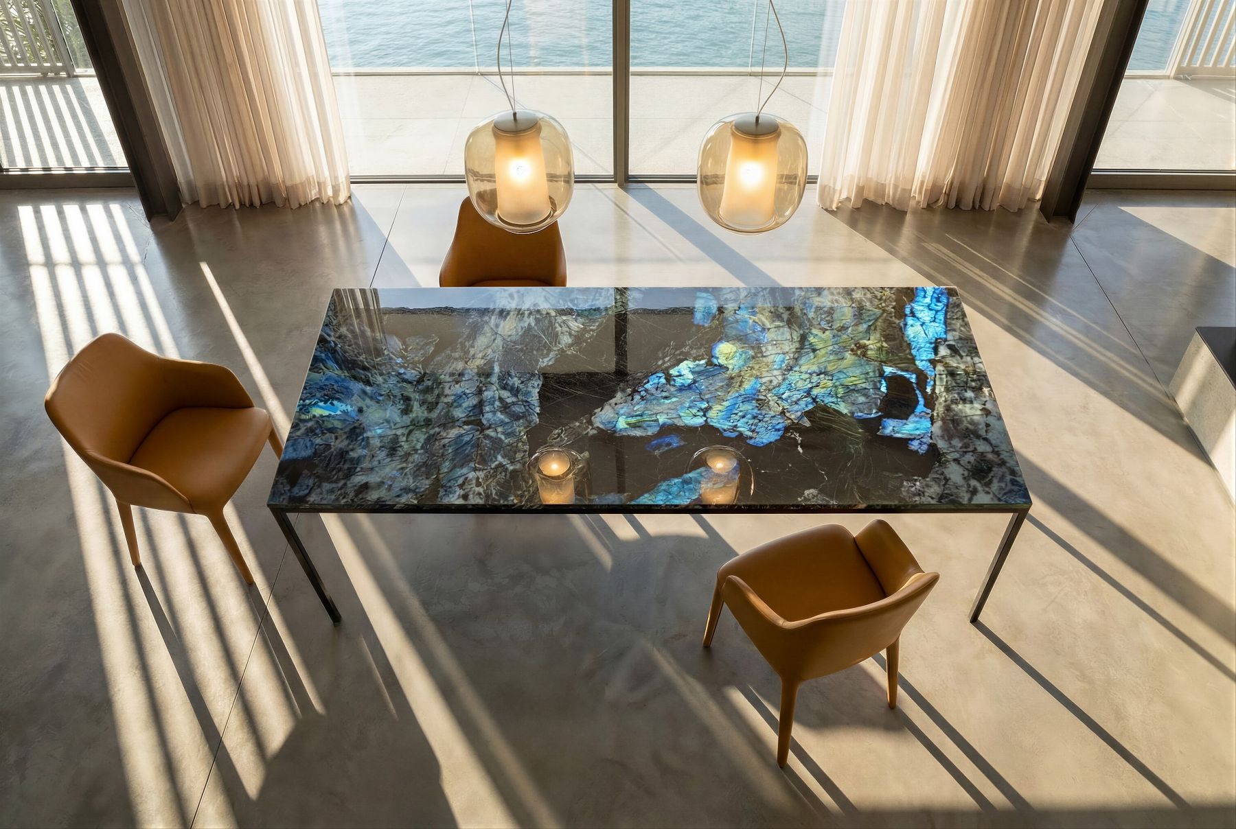 Die Oberfläche der Natursteinplatte wird nach ihrem Wunsch poliert, mattgeschliffen, gebürstet oder geflammt. Die handwerklich hochwertige Verarbeitung verleiht dem Tisch das Finish zum Eye-Catcher. Zum Schutz wird die edle Steinoberfläche mit feinstem Öl versiegelt. Dieses können Sie auch bei uns im Shop erwerben.