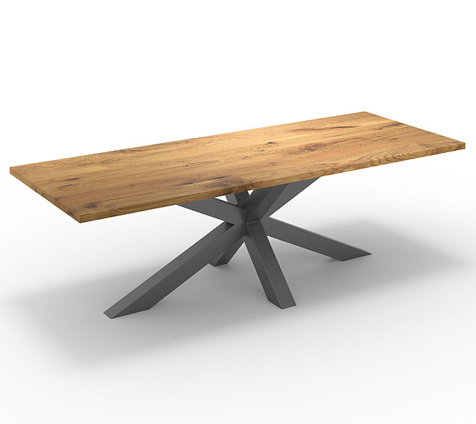 Stilvoll Wohnen ist so einfach! Dank des ungewöhnlichen Designertisches Krakau mit dem aufwendig gearbeiteten Tischgestell in Sternform wird Ihr Wohnbereich erfrischt und belebt. Der Esstisch ist der Mittelpunkt in fast jeder Familie - es werden gemeinsam Mahlzeiten eingenommen, Hausaufgaben erledigt oder Gäste empfangen. Zu Ihrem Vorteil können Sie in unserem Onlineshop Ihren Esstisch genau an Ihre Wünsche anpassen. Durch die Auswahl Ihres Lieblingsholzes, die Angabe Ihrer Wunschmaße und die Konfiguration beinah unzähliger Anpassungsmöglichkeiten wird dieser robuste Massivholztisch zum attraktiven Unikat. Dieser Esstisch distanziert ganz klar von langweiliger und monotoner Massenfertigung. Produktbilder können von Ihrer Konfiguration abweichen, da nicht alle Parameter abgebildet werden können. Zur besseren Vorstellung fordern Sie bitte eine Visualisierung an.