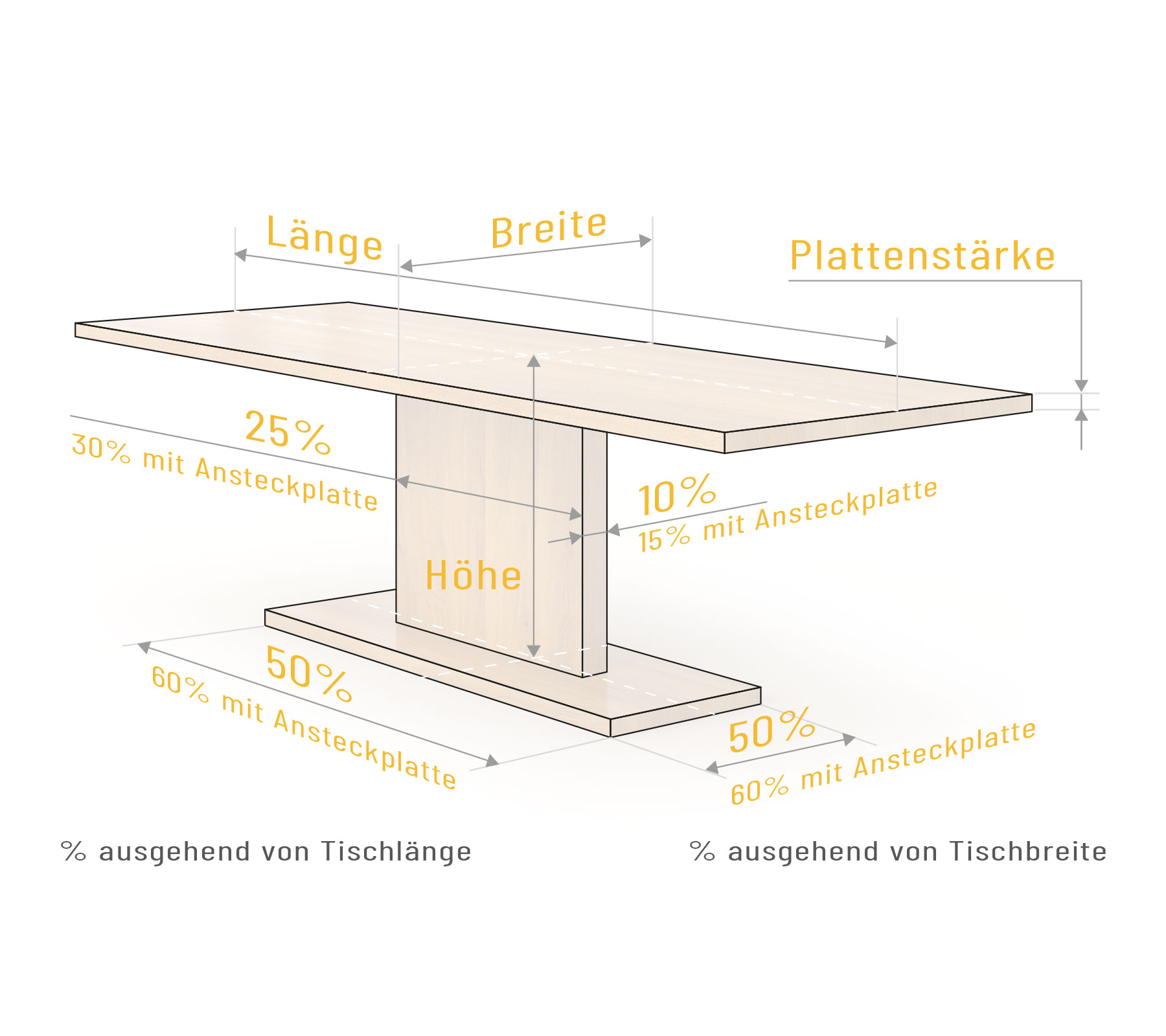 Eine Vergrößerung des Tisches ist durch Ansteckplatten möglich. Entscheiden Sie sich für 1 oder 2 Ansteckplatten für Ihr Modell und bleiben Sie so bequem flexibel bei der Vergrößerung Ihres Tisches.