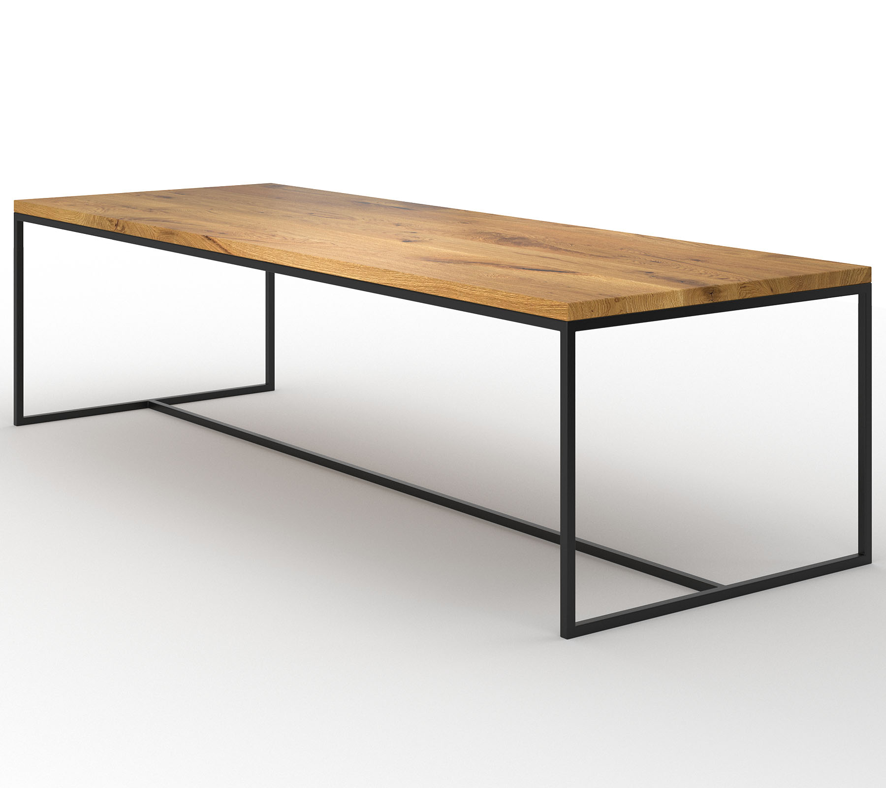 Moderner Esstisch Bari mit edlem Metallgestell und Massivholztischplatte