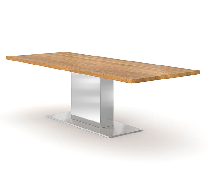 Säulentisch Deluxe mit massiver Holzplatte nach Maß Edelstahlgestell Kilkenny