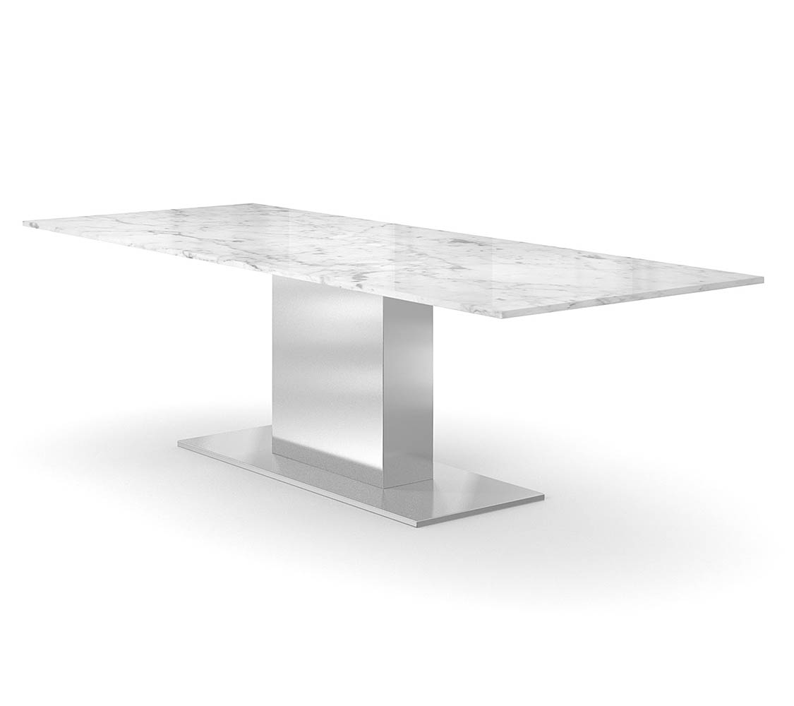 Beim Tischfuß können Sie zwischen Edelstahl gebürstet oder Stahl auswählen. Der Stahl kann dann eine Lackierung in Wunschfarbe erhalten, oder raffiniert mit Blattgold, Blattsilber oder Blattkupfer veredelt werden.