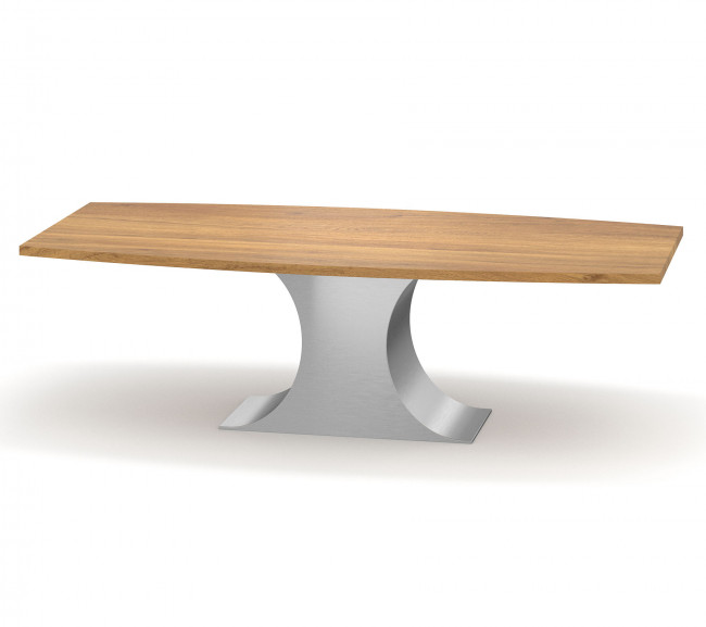 Eine wunderbare Zusammenkunft aus wohnlichem Holz und kühlem Edelstahl setzt perfekt Ihre vier Wände in Szene. Unser Esstisch Amsterdam passt sich in jede moderne Einrichtung an. Dieser mondäne Begleiter verbindet ausgewogen die Materialen Edelstahl, Stahl und Massivholz. Die Massivholzplatte des Tisches verwandelt jeden Essbereich und gibt Ihm eine natürliche Atmosphäre. Aus traditioneller Handwerkskunst entsteht somit ein einmaliges formschönes Massivholzmöbel mit einem elegant geschwungenen Tischgestell.