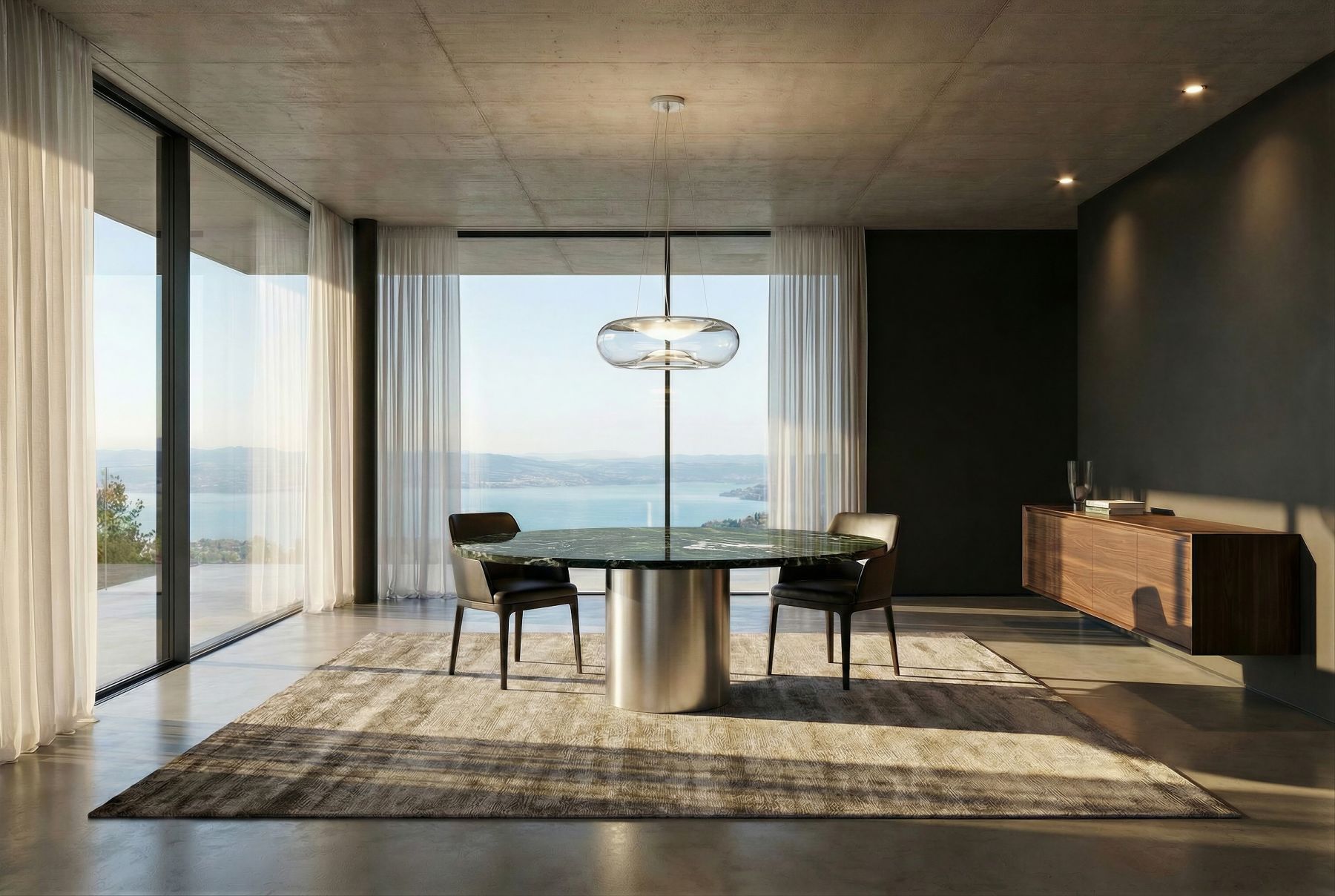Anders als bei herkömmlichen Säulentischen verzichtet der Esstisch Lancy auf eine Bodenplatte. Die hochwertige Steinplatte, egal in welcher Form, lässt dieses Modell sehr zeitlos aussehen und bringt ein modernes, angenehmes Flair in jede Räumlichkeit. Produktbilder können von Ihrer Konfiguration abweichen, da nicht alle Parameter abgebildet werden können. Zur besseren Vorstellung fordern Sie bitte eine Visualisierung an.