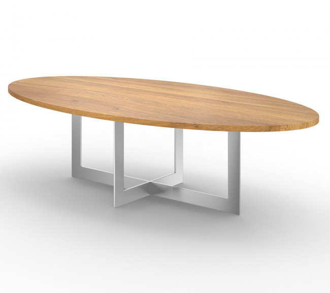 Exklusiver Esstisch rund/oval Massivholz Metallgestell Arbon