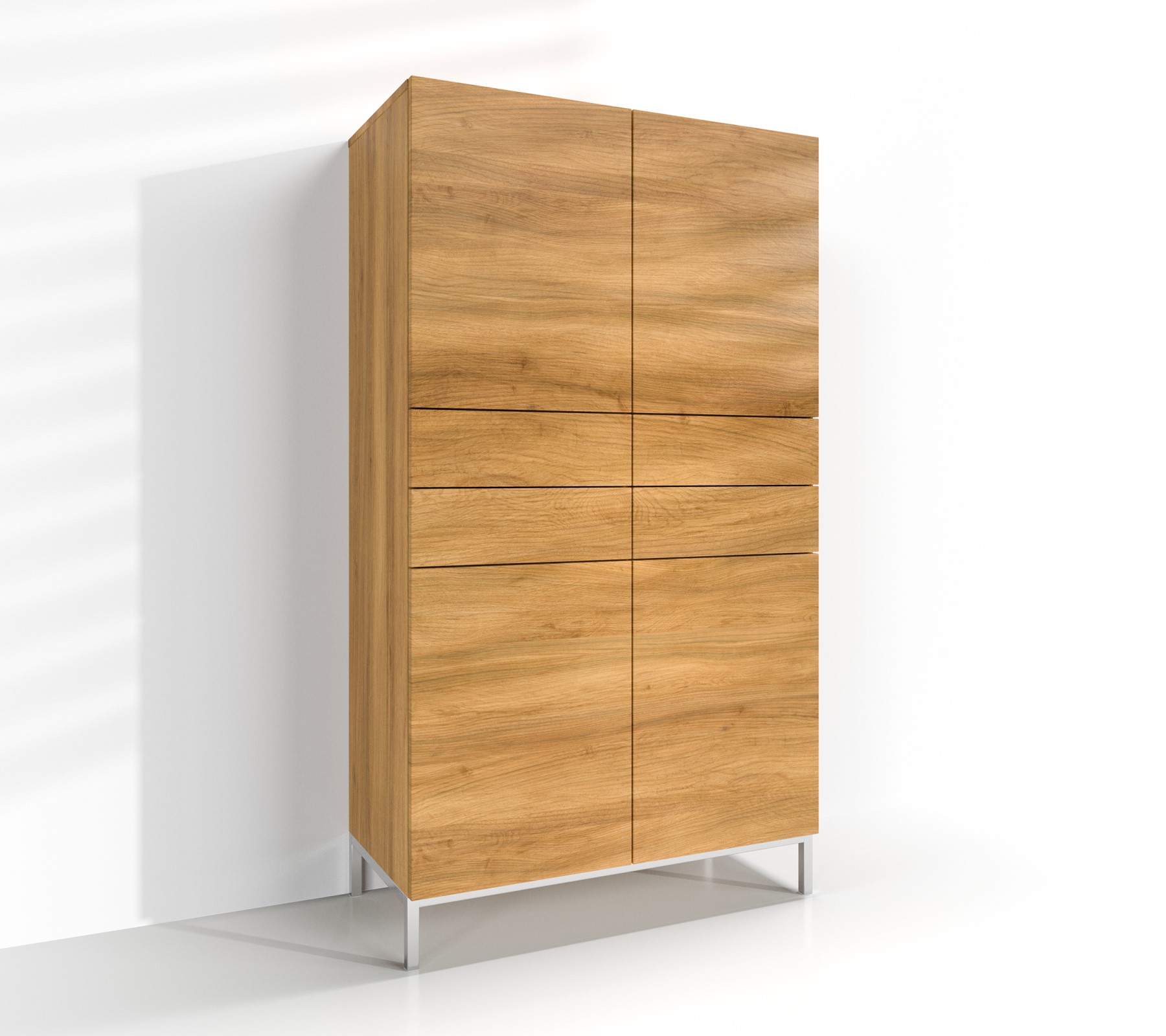 Ob zusätzliche Türen, Schubladen oder eine spezielle Größe – das Highboard ist vollkommen konfigurierbar und kann Ihren persönlichen Bedürfnissen entsprechend gefertigt werden. Dabei wird höchste Qualität und Präzision in der Verarbeitung garantiert, sodass Sie nicht nur eine langlebige Stabilität, sondern auch ein besonderes haptisches Erlebnis erwarten dürfen.