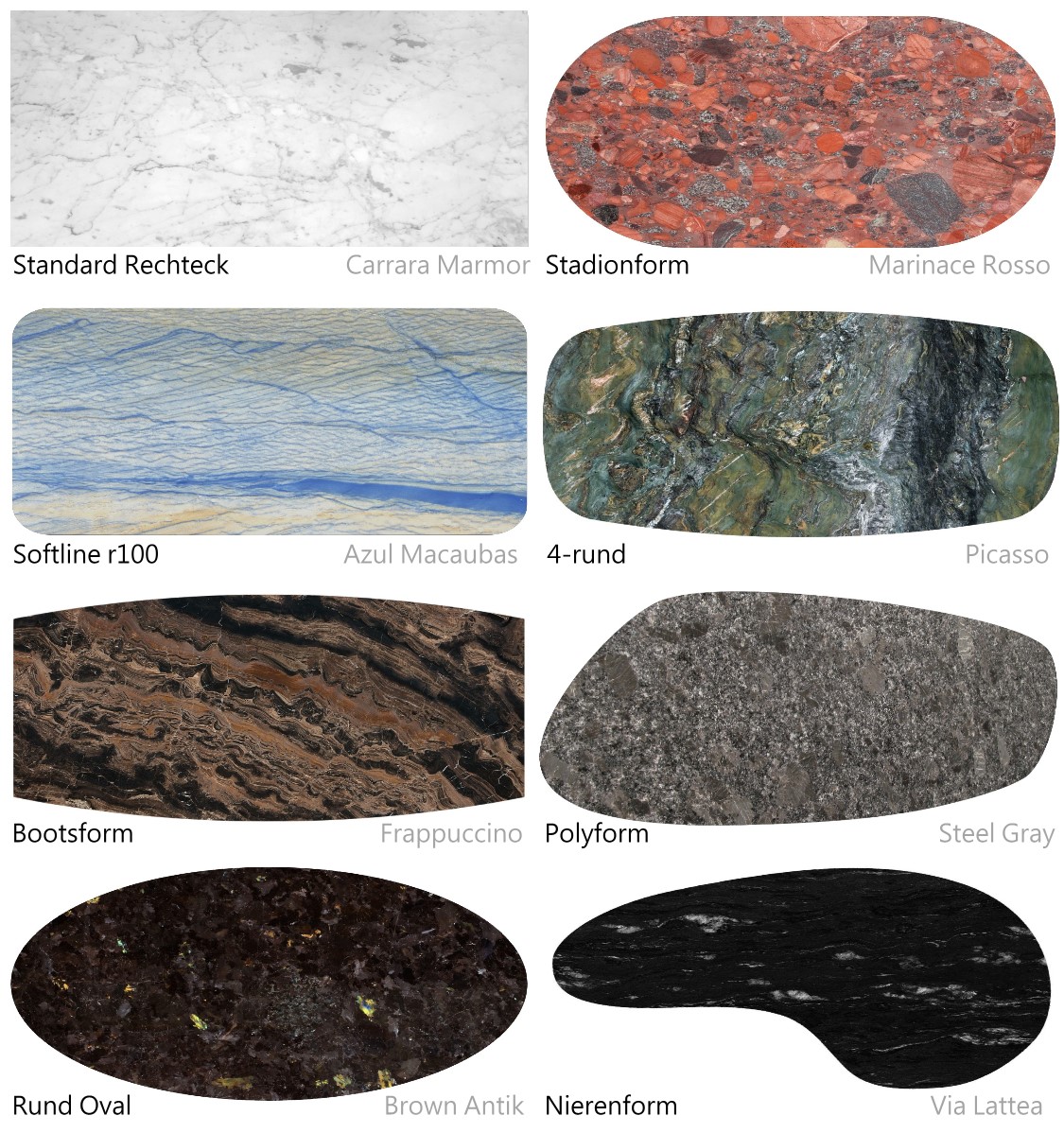 Die Oberfläche der Natursteinplatte wird nach ihrem Wunsch poliert, mattgeschliffen, gebürstet oder geflammt. Die handwerklich hochwertige Verarbeitung verleiht dem Tisch das Finish für den perfekten Blickfang. Zum Schutz wird die edle Steinoberfläche mit feinstem Öl versiegelt, dieses können Sie auch bei uns im Shop erwerben.