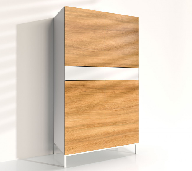 Unser Highboard „Multi HS06-Holz“ wird die Blicke auf sich ziehen. Der Hochschrank wurde mit zwei Schüben versehen. Die Beschläge sind ausnahmslos hochwertige Premium-Beschläge. Der Korpus ist aus einer beschichteten Dekorplatte gefertigt und kann mit Ihrer gewünschten Farbe lackiert oder veredelt werden. Es ist natürlich auch möglich, den Korpus in Echtholz zu fertigen. Die Fronten des Designerschranks sind aus Massivholz. Der stilvolle Schrank ist ein hochwertiges Einzelstück, welches stabil ist und Ihren persönlichen Wünschen angepasst werden kann. Die hohe Kommode kann natürlich auch mit weiteren Türen oder Schubläden gefertigt werden. Einzigartige Qualität und exklusive Verarbeitung sind unser Standard. Produktbilder können von Ihrer Konfiguration abweichen, da nicht alle Parameter abgebildet werden können. Zur besseren Vorstellung fordern Sie bitte eine Visualisierung an.