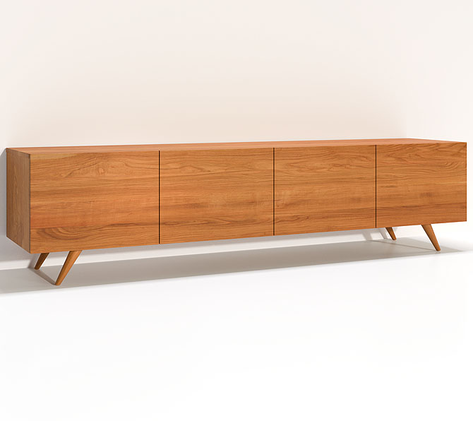 Das Lowboard Lissabon ist angenehm, unaufgeregt, zweckmäßig und einfach zu anderen Möbeln zu kombinieren. Eine große Auswahl an zahlreichen Dekoren und die Wahl der Holzoberflächen Verarbeitung lassen Ihr individuelles Massivmöbel entstehen. Diese perfekte Einrichtungslösung bietet natürlich genügend Platz für Ihre alltäglichen Utensilien. Ein schönes Detail dieses Lowboards sind die schrägen und schmalen Füße, welche der Kommode eine gewisse Leichtigkeit verleihen.
