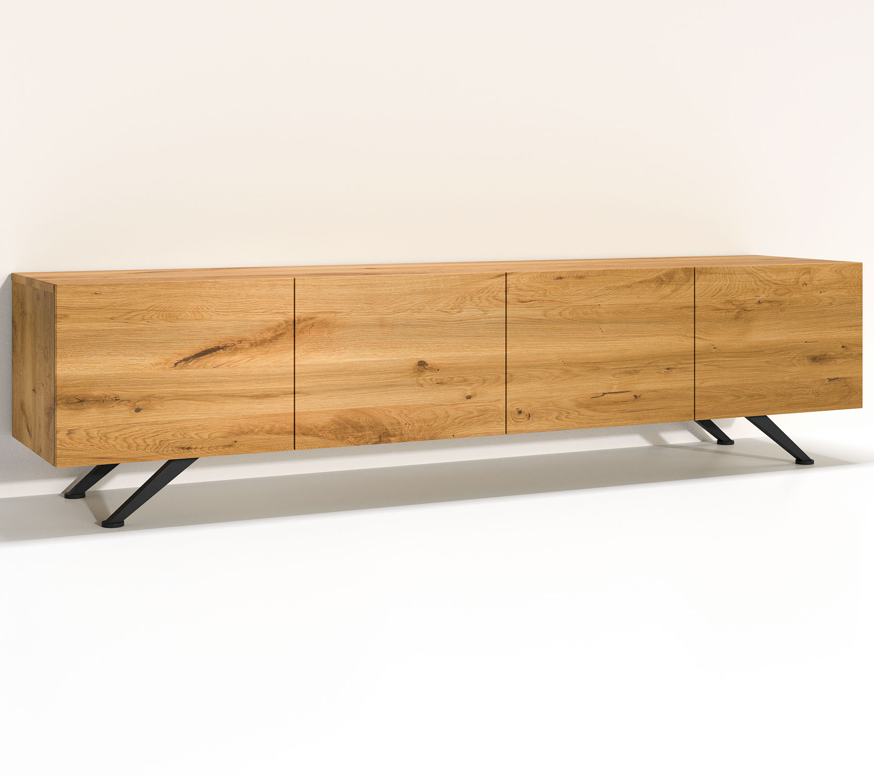 Dürfen wir vorstellen: das neue Highlight Ihres Wohnzimmers! Lowboard Lyon, das Symbol für Lebenslust, überzeugt durch seinen soliden Auftritt und erobert damit die Herzen aller stilsicheren Einrichtungsfans! Die minimalistische Gestaltung verlangt maximale Präzession – so wird dieses Lowboard zu einem echten Liebhabermodell und zum Symbol für Persistenz. Mit diesem Board werden einfach Visionen wahr: wecken Sie den Designer in sich und entdecken Sie das Kontrast-Reich von warmen Massivholz und stylischen Metallakzenten, ganz nach Ihren Wünschen und Vorstellungen und fernab von engstirnigen Serienproduktionen. Entscheiden Sie, wie viele Türen, Klappen oder Regale Sie benötigen, oder ob das Lowboard komplett offen sein soll. Sie kreieren den Entwurf - wir Ihr Lowboard!