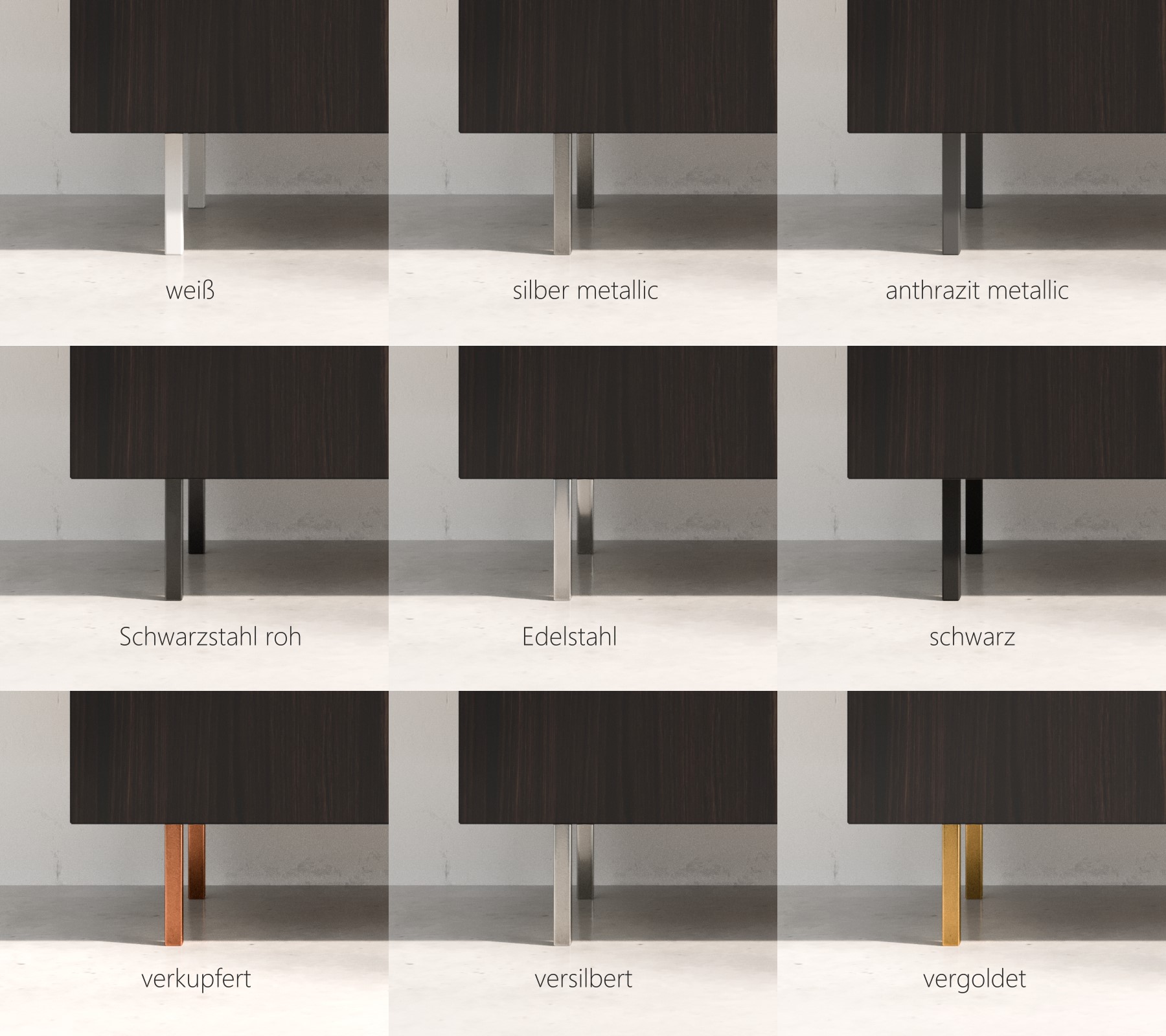 • Gestell / Bodenplatte:  Schwarzstahl roh