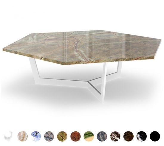 Designer Couchtisch mit Metall Gestell und Marmorplatte