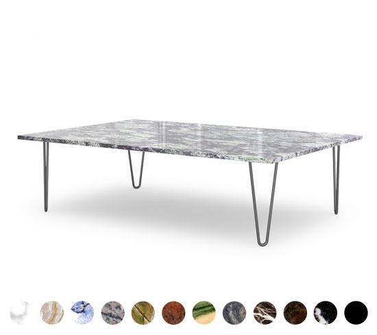 Konfigurierbarer Couchtisch Kilkenny mit Natursteinplatte und Stahlgestell
