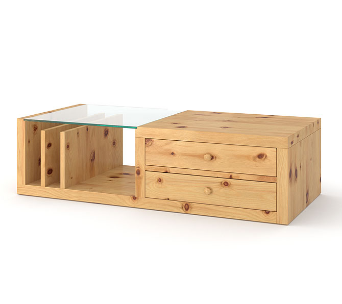 Sie lieben Möbel, die nicht nur gut aussehen, sondern gleichzeitig auch wunderbar praktisch sind? Dann wird Sie dieser Wohnzimmertisch ganz bestimmt begeistern. Das Modell ist in einer modernen Formensprache gestaltet und besteht aus echtem Massivholz. Die Ablageplatte ist dagegen aus echtem Sicherheitsglas hergestellt. Der Clou sind jedoch die verschiedenen Aufbewahrungen und Schübe. Stellen und legen Sie die gerade nicht benötigten Utensilien, Bücher und Zeitschriften daher platzsparend unterhalb der Glasplatte ab und erfreuen Sie sich an einem wunderbar aufgeräumten Wohngefühl.