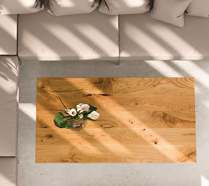 Die Tischplatte aus anmutigem Massivholz gibt dem Wohnzimmertisch seinen einzigartigen Charakter. In den unterschiedlichsten Farbnuancen und den diversesten Strukturen wird jede Holzplatte zum individuellen Schmuckstück. Finden Sie zwischen zahlreichen Möglichkeiten Ihren Favoriten um Ihren Wohnbereich ein neues und schickes Flair zu verleihen. Sie haben den richtigen Holzdekor für sich noch nicht entdeckt? Nutzen Sie unseren kostenlosen Musterversand!