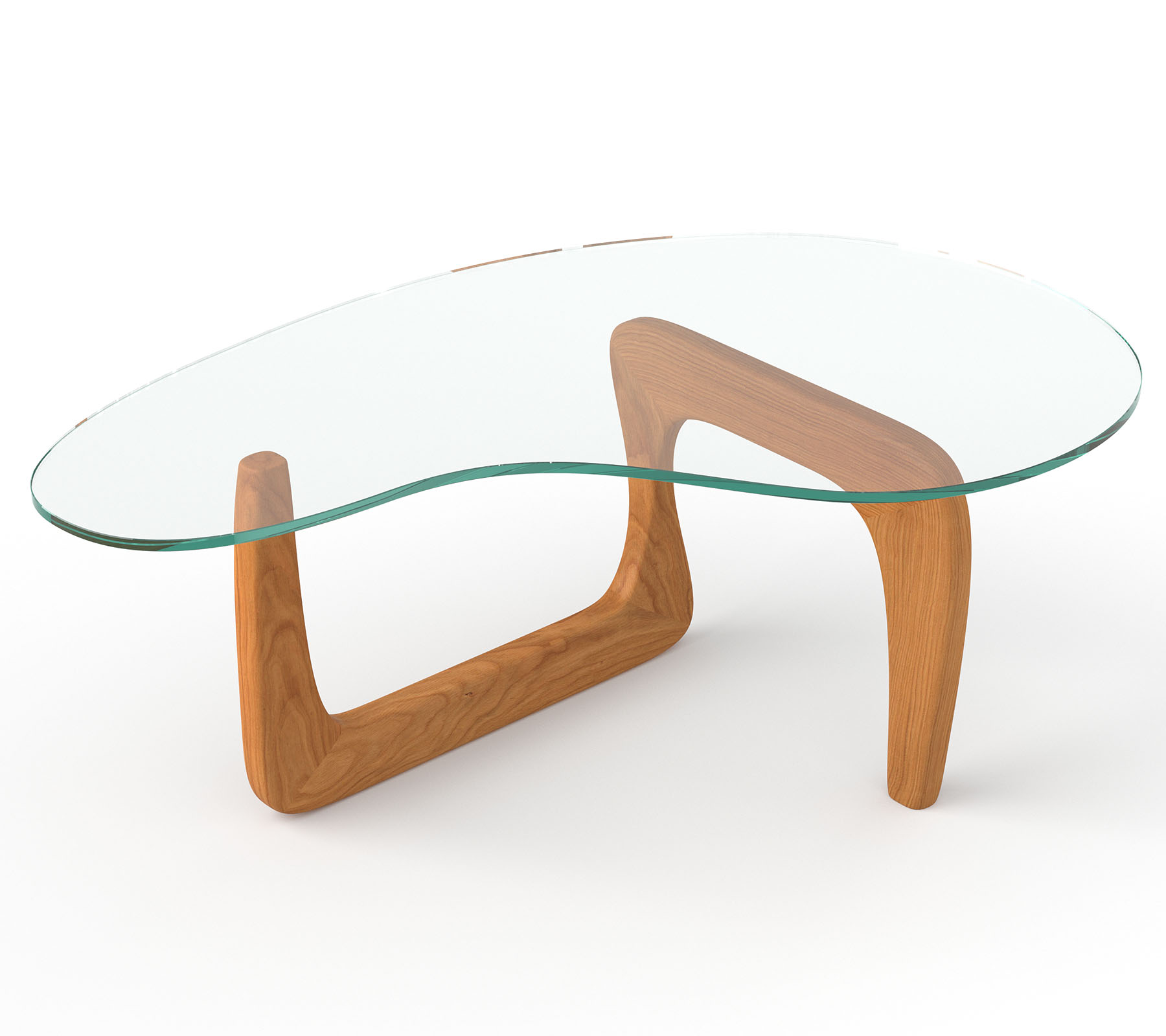 Luxus Couchtisch Niere mit Glasplatte und Massivholz Gestell Siena