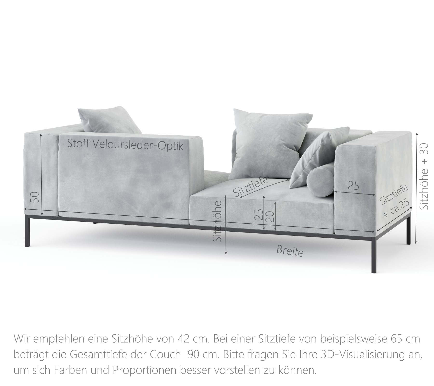 Eine Couch, die sich perfekt an Ihren Stil und Ihre Bedürfnisse anpasst – das ist die maßgefertigte Toscana Couch. Das minimalistische Metallgestell setzt einen modernen Akzent, während der Polsterbezug in warmen Erdtönen für eine wohnliche Atmosphäre sorgt. Die Kombination aus kühlem Metall und den weichen, hochwertigen Bezugsstoffen schafft ein harmonisches Zusammenspiel der Materialien. Ganz gleich, ob Sie Leder oder Stoff bevorzugen – jedes Detail wird nach Ihren individuellen Vorgaben gefertigt.