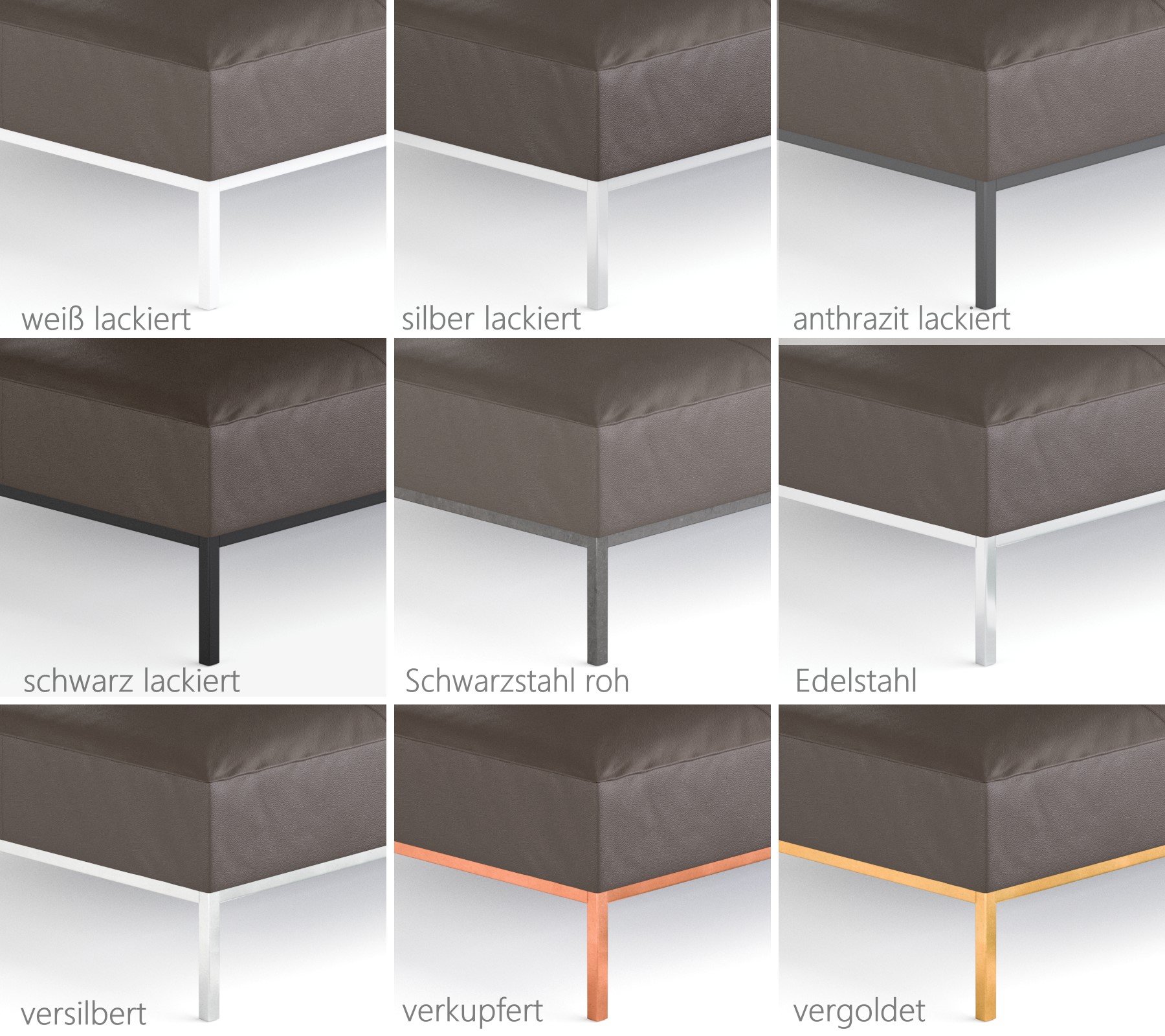 Großen Einfluss auf die Optik hat die Farbe des Polsterbezugs. Sämtliche Echtleder-, Natur- und Kunstfaserstoffe, die wir in unserer Manufaktur verarbeiten, beziehen wir von renommierten Gerbereien, Webereien und Stoffverlagen, die hohe ökologische Standards verfolgen. Sie können Ihr neues Möbelstück in vollen Zügen genießen und sich auf die ausgezeichnete Qualität sämtlicher Materialien verlassen. Benötigen Sie Unterstützung in der Konfiguration Ihres Sitzmöbels, zögern Sie nicht, uns - gerne auch mehrfach - zu kontaktieren. Wir beraten Sie eingehend zu allen technischen und gestalterischen Fragen, die im Laufe des Auswahlprozesses aufkommen.