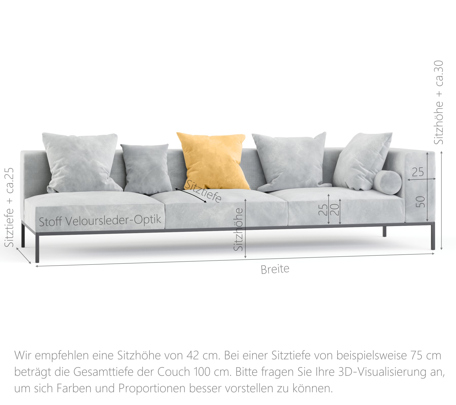 Machen Sie Ihr Sofa noch gemütlicher! Wählen Sie passende Kissen in der Größe 50 x 50 cm oder lassen Sie sich Ihr Wunschmaß individuell anfertigen. Die hochwertigen Kissen sind mit einem Inlet gefüllt, das mit weichen Federn für maximalen Komfort sorgt. So schaffen Sie ein harmonisches Gesamtbild und eine einladende Wohlfühloase in Ihrem Zuhause. Haben Sie besondere Vorstellungen? Kontaktieren Sie uns – wir setzen Ihre Designwünsche gerne um!
