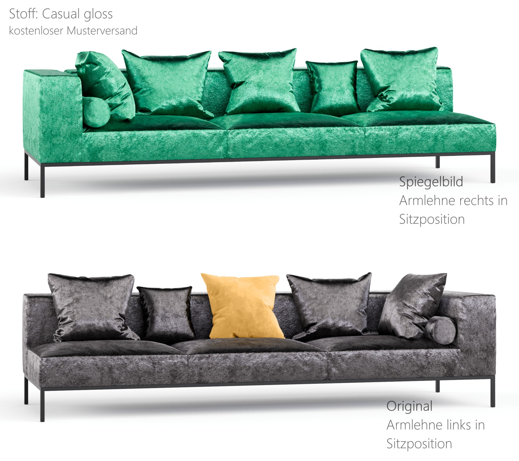 Damit Sie sich vor dem Kauf von der Qualität und den Farben unserer Leder- und Stoffvarianten überzeugen können, bieten wir Ihnen einen kostenlosen Musterversand an. Bestellen Sie Ihre Wunschmuster bequem nach Hause und prüfen Sie Optik sowie Haptik in Ihrem eigenen Wohnambiente.